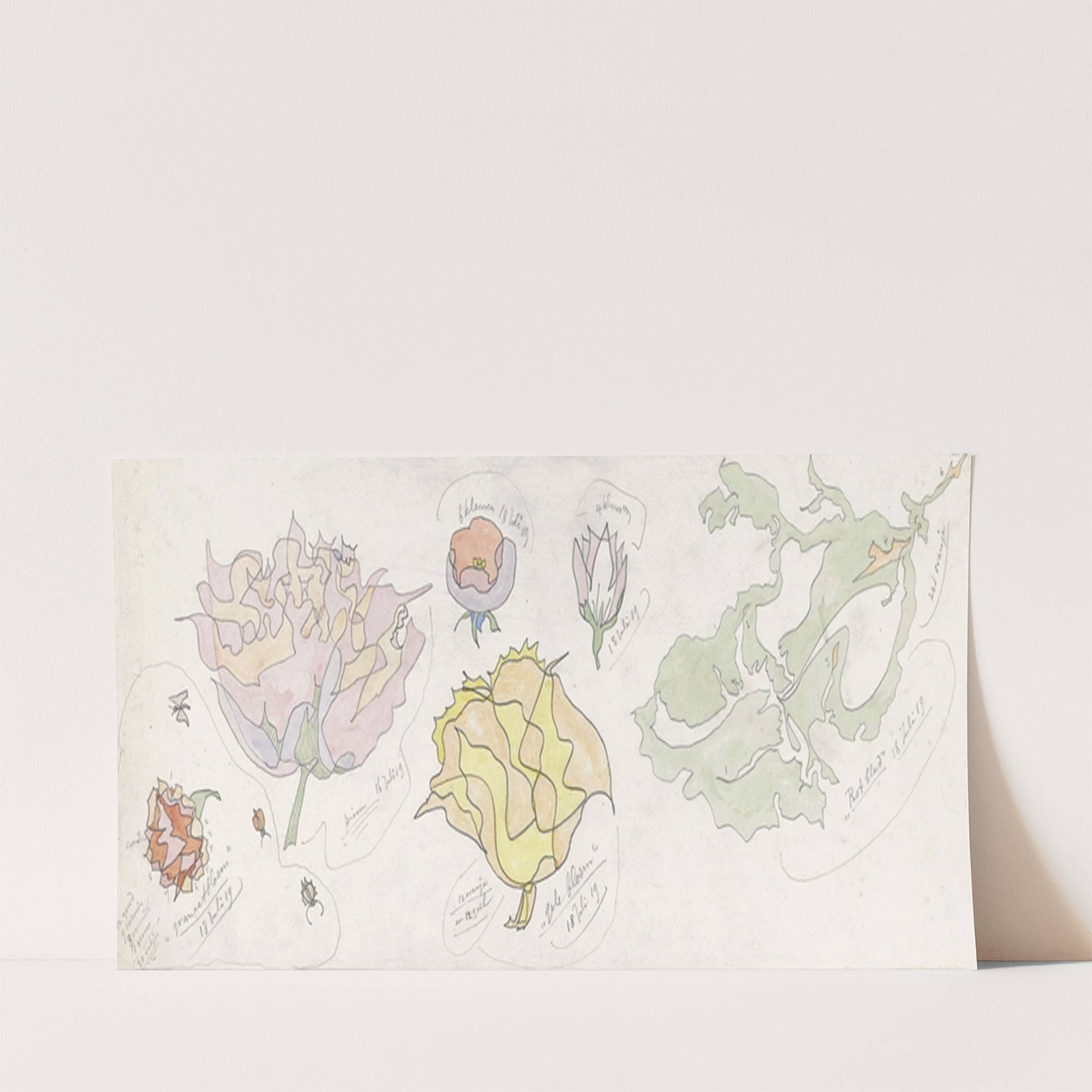 Ontwerp voor aardewerkdecoratie; granaatbloem, pioen, gele bloem en rotblad (1919-07-16) by Theo Colenbrander - Wall Art Print