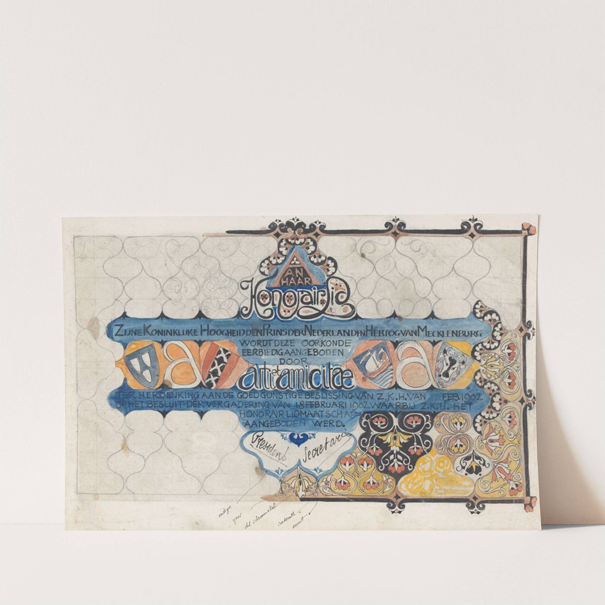 Ontwerp voor een oorkonde van Arti en Amicitiae voor Prins Hendrik, bij zijn erelidmaatschap in 1902 by Carel Adolph Lion Cachet - Wall Art Print
