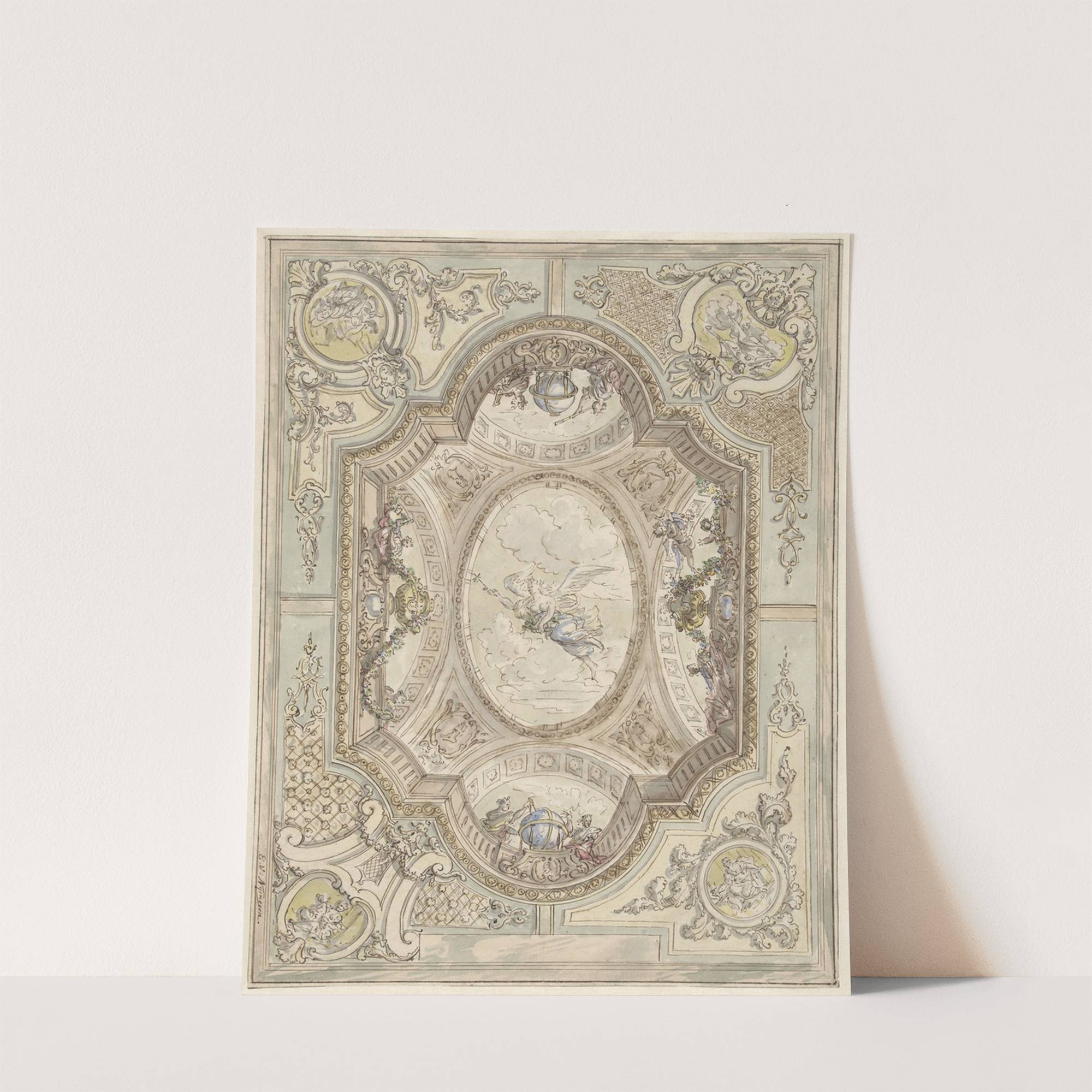 Ontwerp voor een plafondschildering met centraal een voorstelling van Aurora by Elias van Nijmegen - Wall Art Print