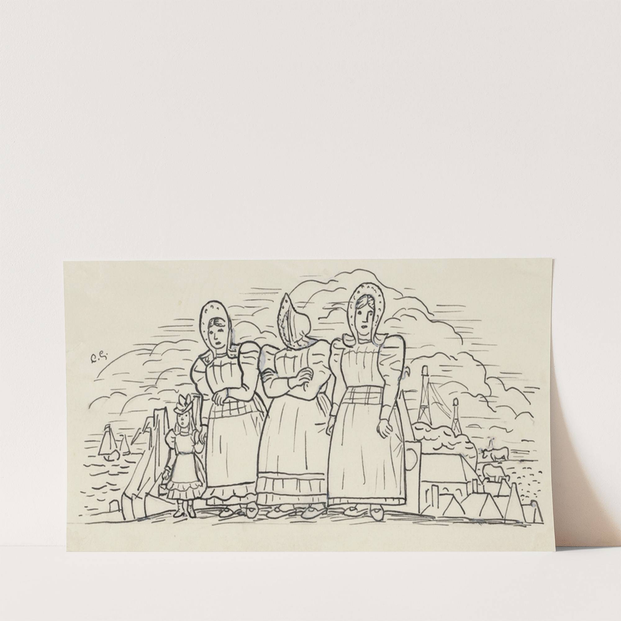 Ontwerp voor een vignet voor het maandblad voor Beeldende Kunsten; Drie vissersvrouwen en een meisje by Leo Gestel - Wall Art Print