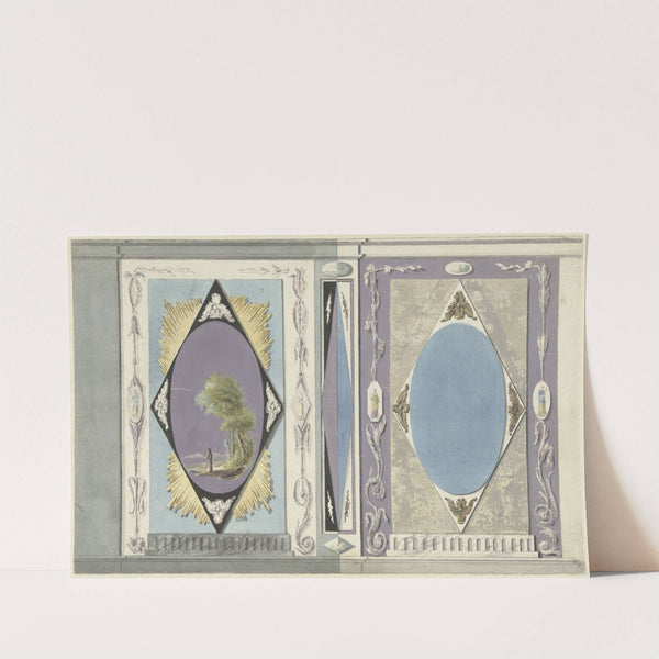 Ontwerp voor kamerversiering met twee panelen met een ovaal in een ruit