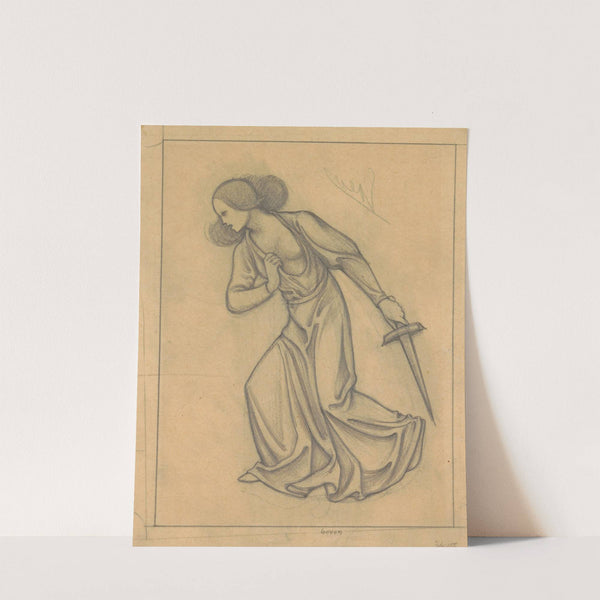 Ontwerp voor wandschildering in de Beurs van Berlage; staande vrouw met getrokken zwaard by Antoon Derkinderen - Wall Art Print