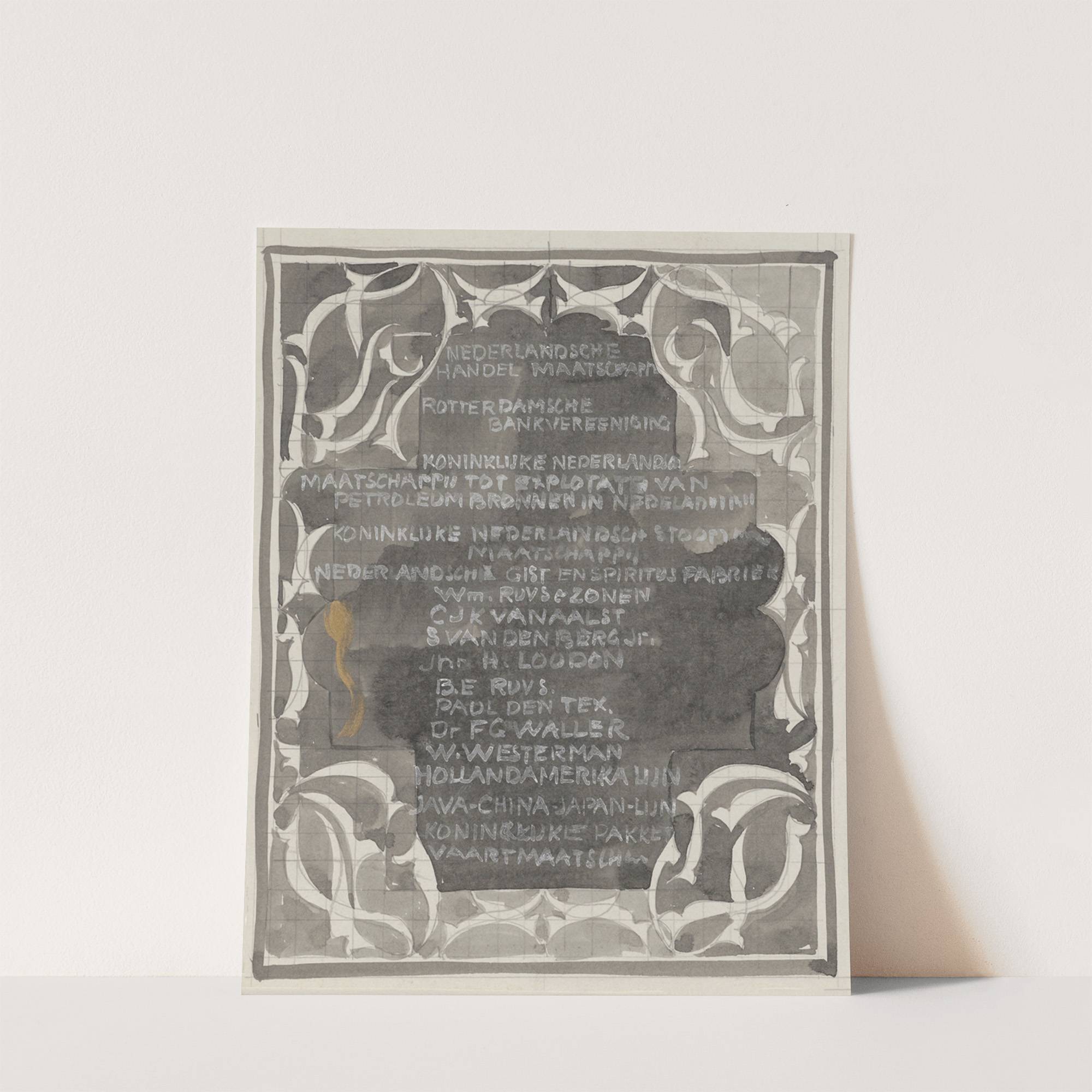 Ornamentaal ontwerp met namen van bedrijven by Carel Adolph Lion Cachet - Wall Art Print