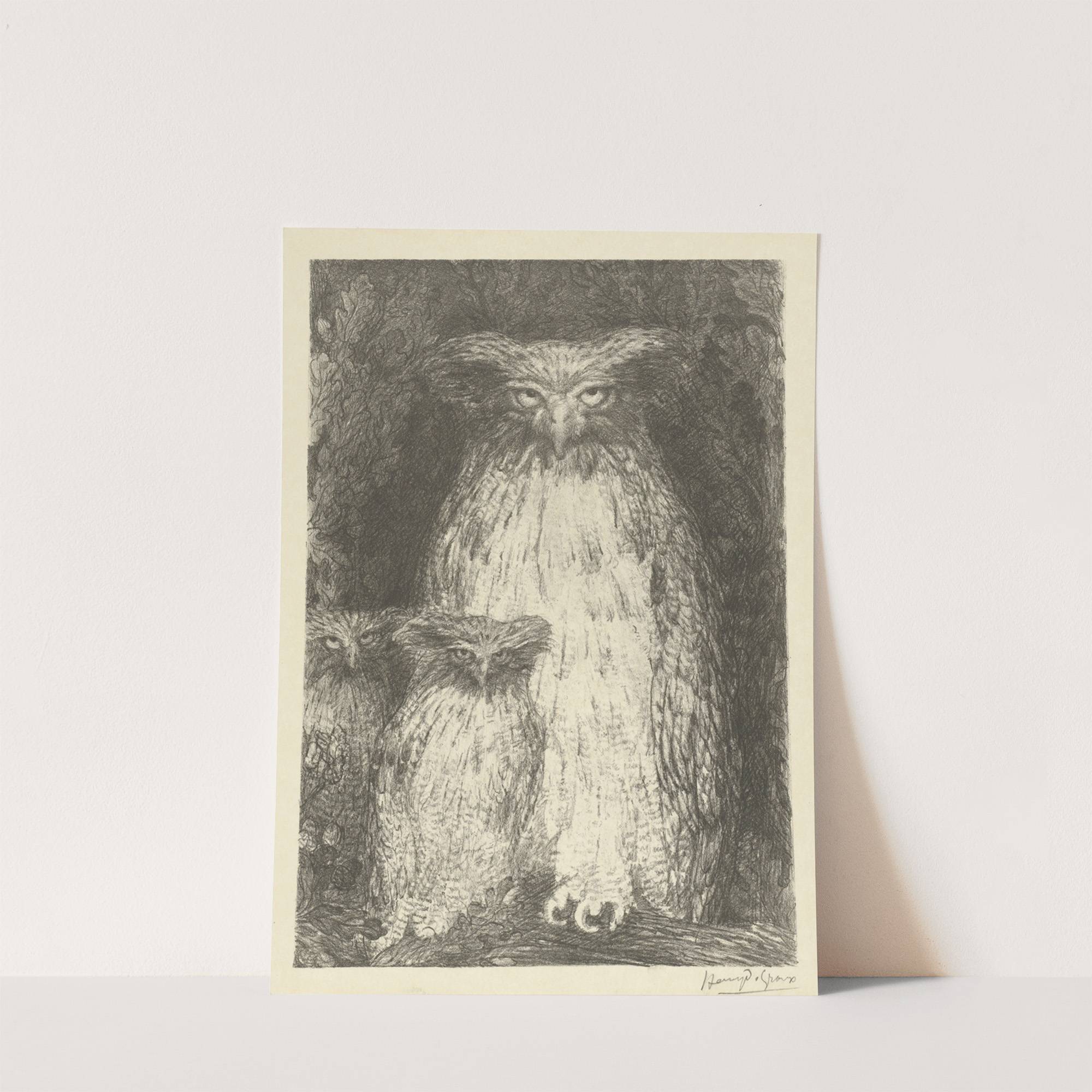 Owl with two owlets sitting on branch (1895) by Henry de Groux - Wall Art Print