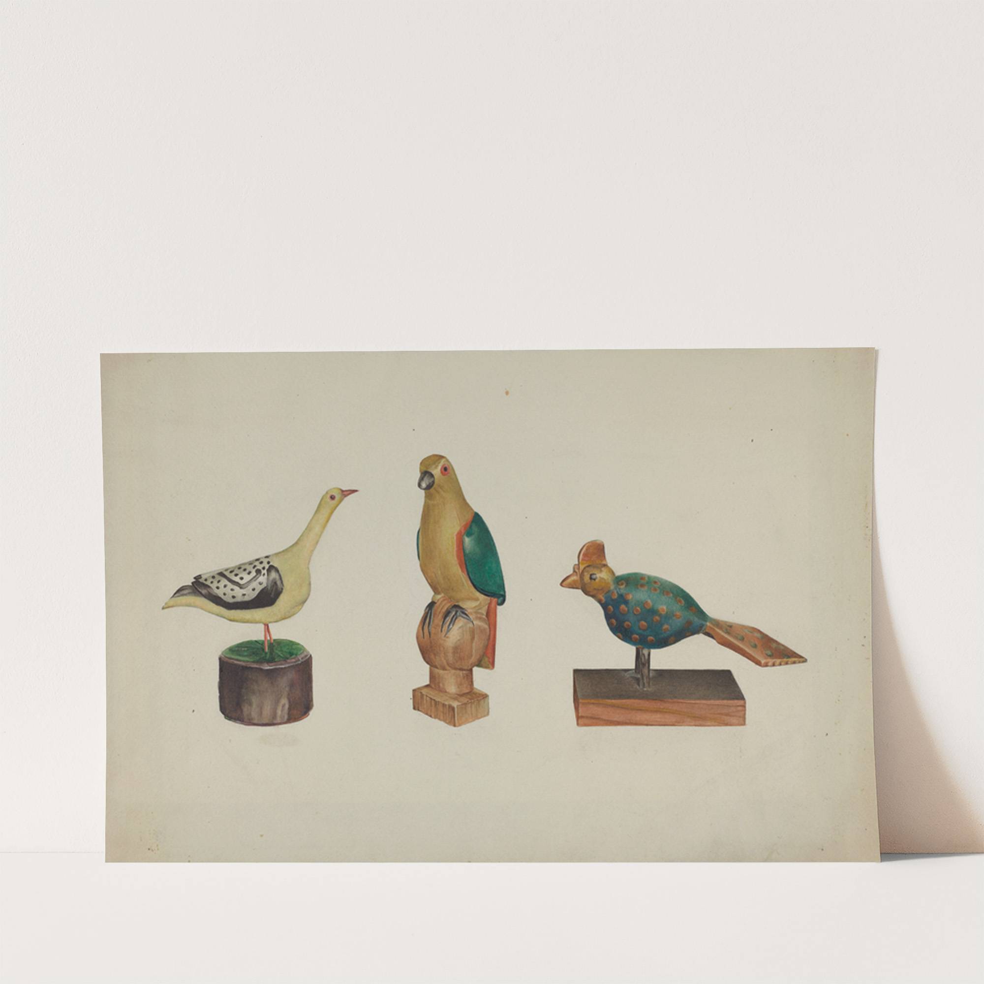 Pa. German Three Carved and Painted Birds by Victor F. Muollo - Wall Art Print