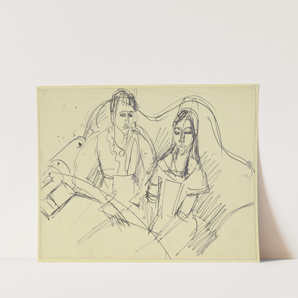 Paar auf einem Sofa am Tisch (ca 1912) by Ernst Ludwig Kirchner - Wall Art Print