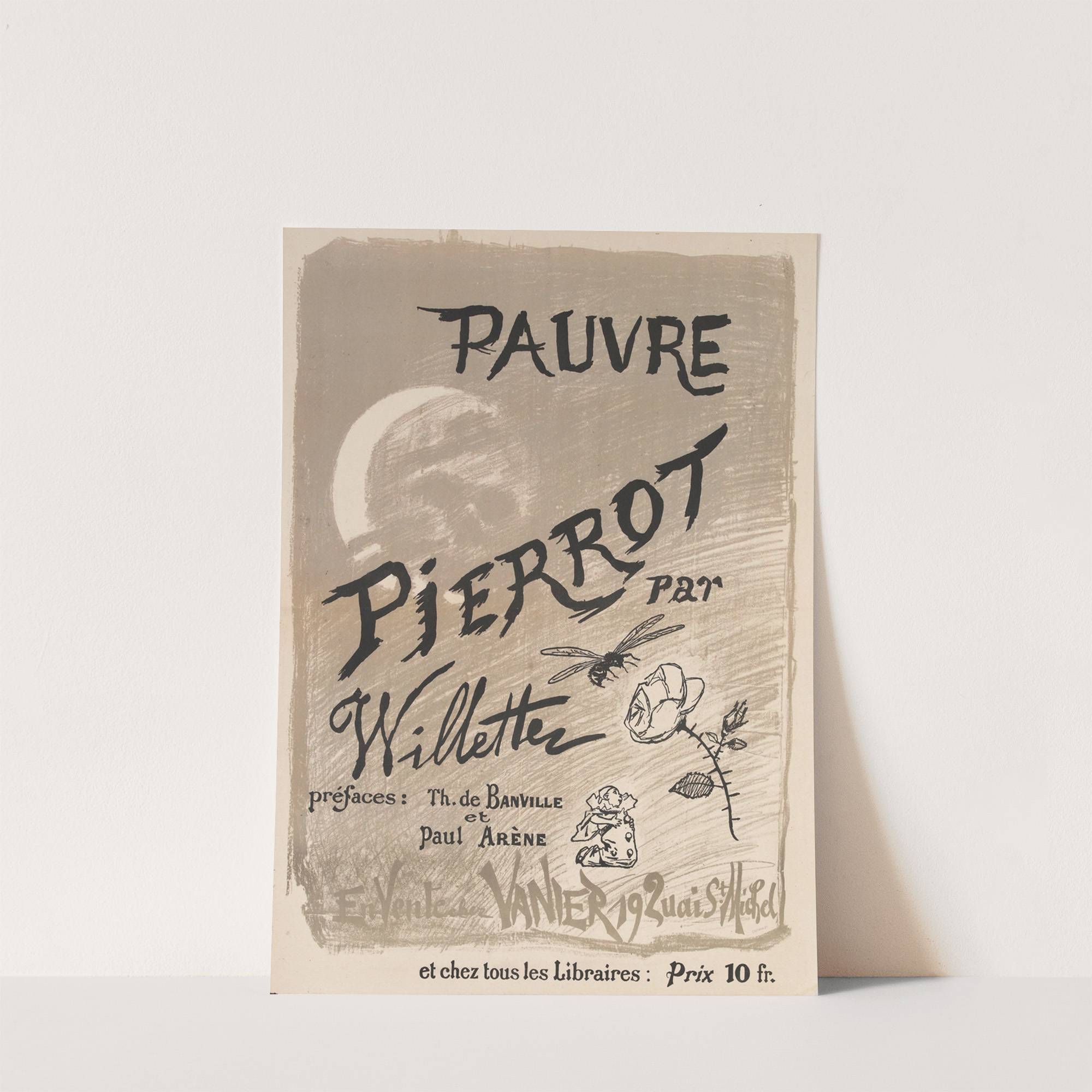 Discover the artistic charm of this vintage-style print featuring a monochromatic, hand-drawn cover for "Pierre Willette." The title is boldly written in uppercase black letters, with "PIERRE" at the top and "WILLETTE" beneath it, adorned by a subtle crescent moon...