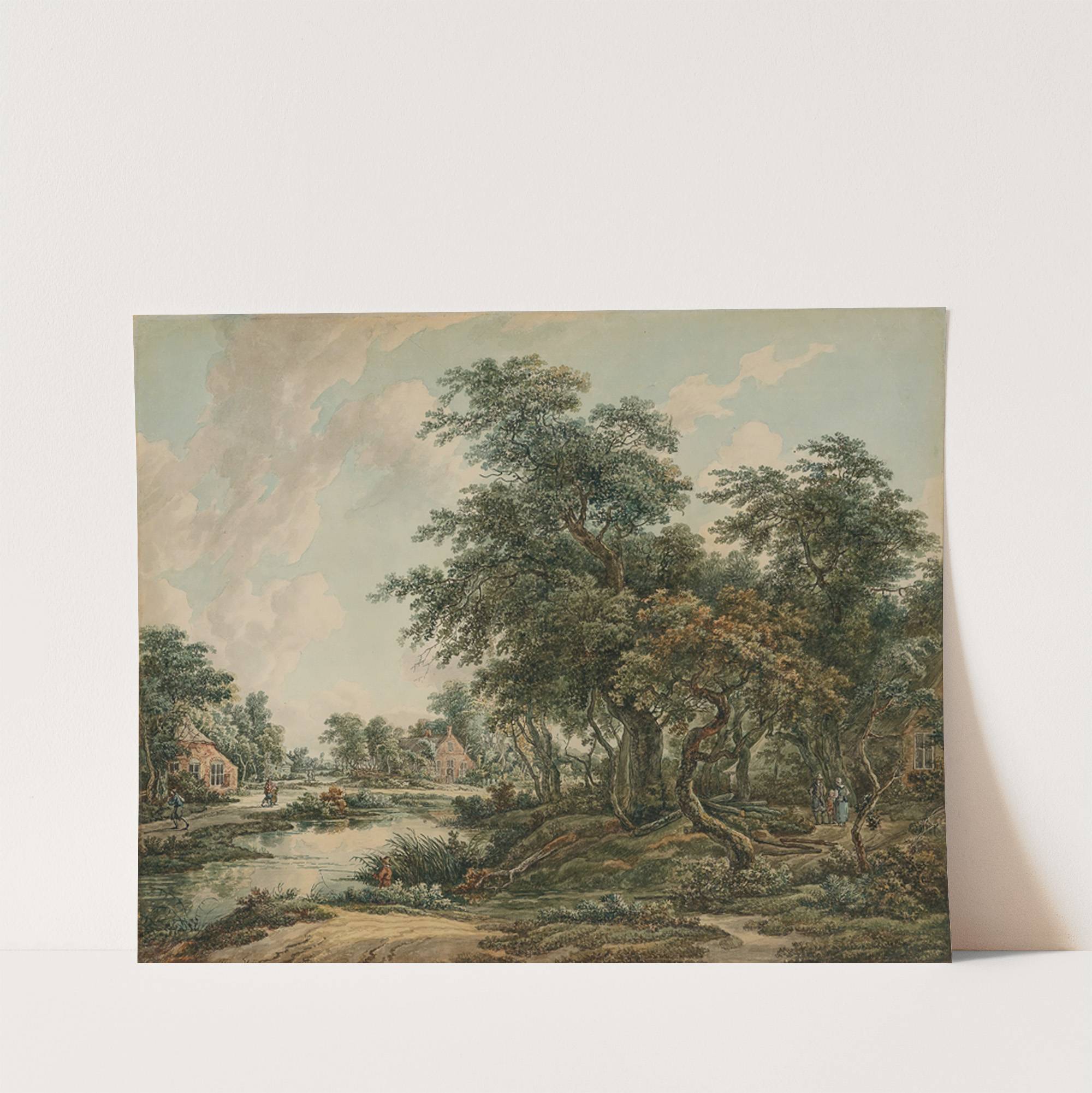 Paysage arboré avec figures et maisons au bord du rivage by Jacob van Strij - Wall Art Print