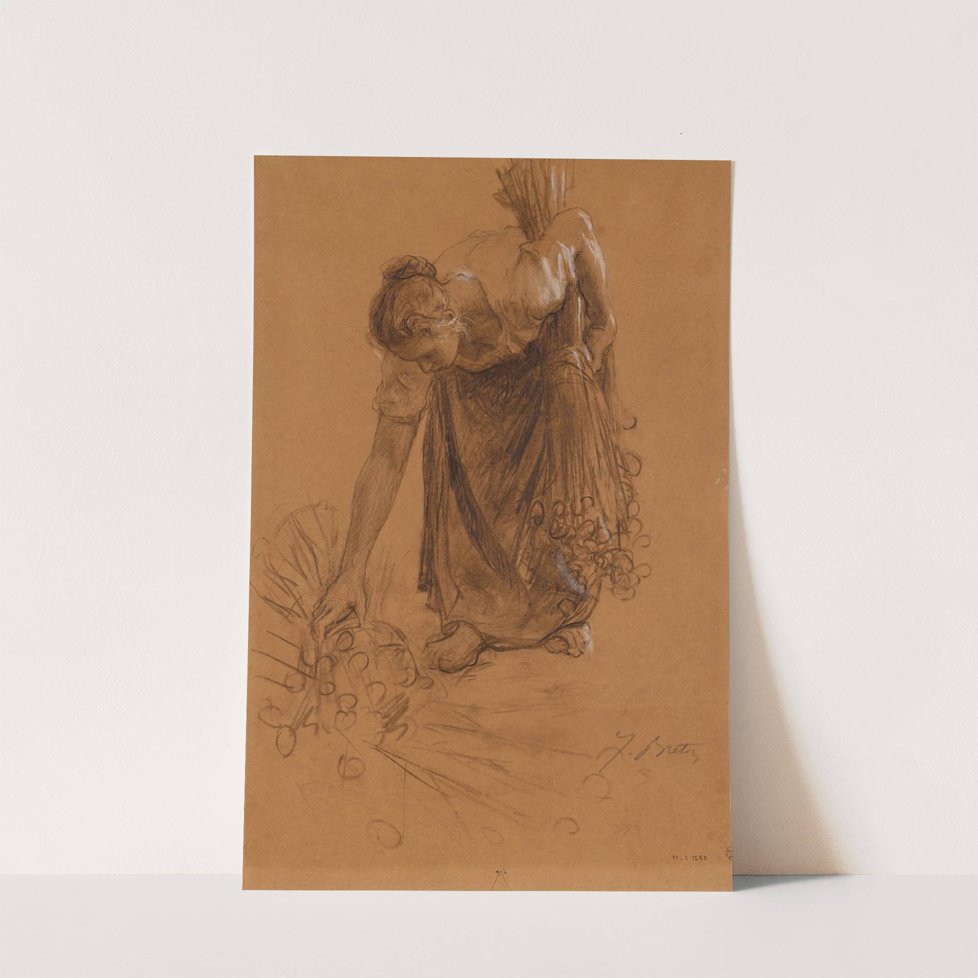 Paysanne ramassant une gerbe d’Åillettes by Jules Breton - Wall Art Print