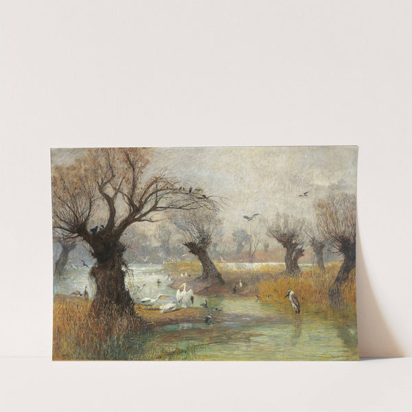 Pelikane am Flussufer by Hugo Charlemont - Wall Art Print