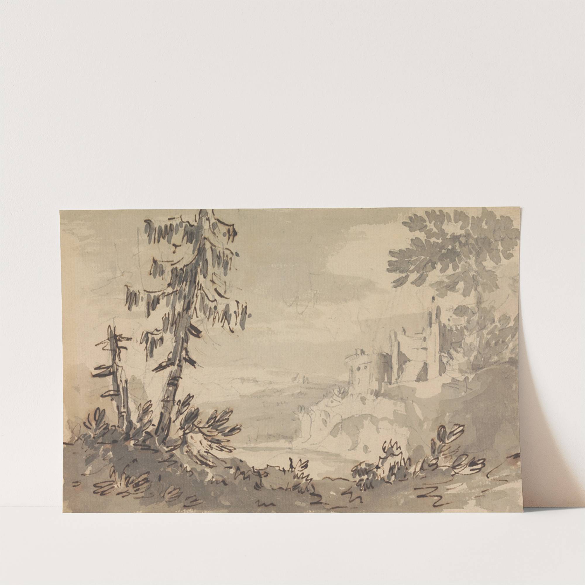 Pine Trees and Castle in a Landscape by William Gilpin - Wall Art Print