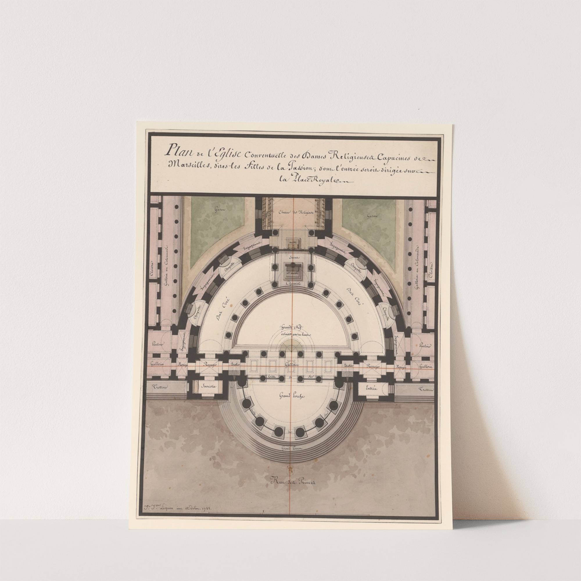 Plan de l’église conventuelle des Dames Religieuses Capucines de Marseilles, dites les Filles de la Passion … – (1788) by Jean Jacques Lequeu - Wall Art Print