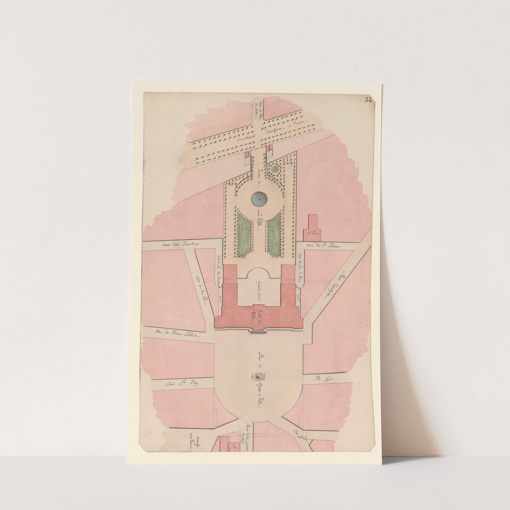 Plan d’urbanisme autour de l’emplacement de l’Hôtel de Ville de Rouen (1799) by Jean Jacques Lequeu - Wall Art Print