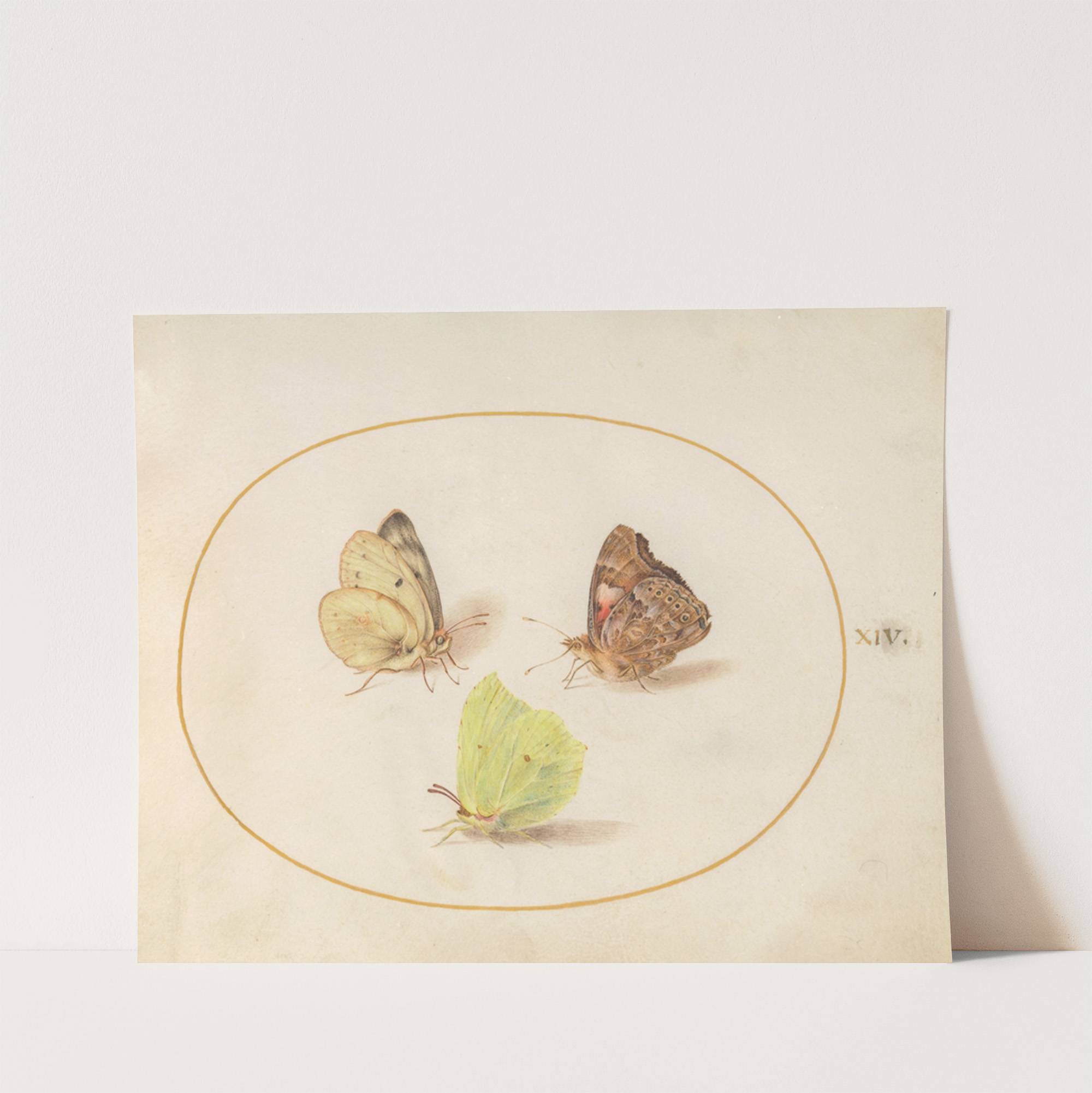 Plate 14; Common Brimstone, Painted Lady, and Clouded Yellow Butterflies (1575-1590) by Joris Hoefnagel - Wall Art Print
