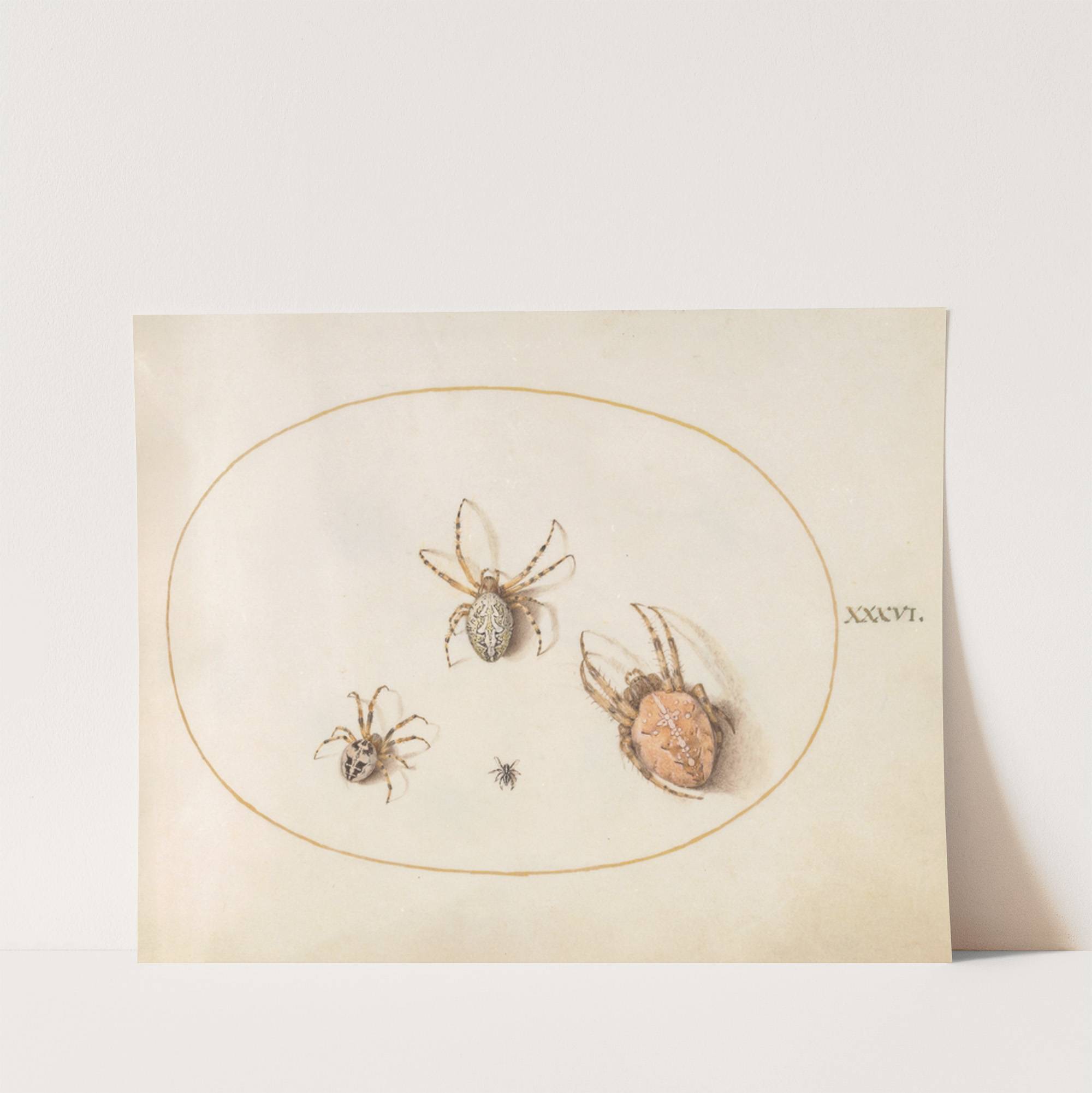 Plate 36; Three Large Spiders and One Small Spider (1575-1590) by Joris Hoefnagel - Wall Art Print
