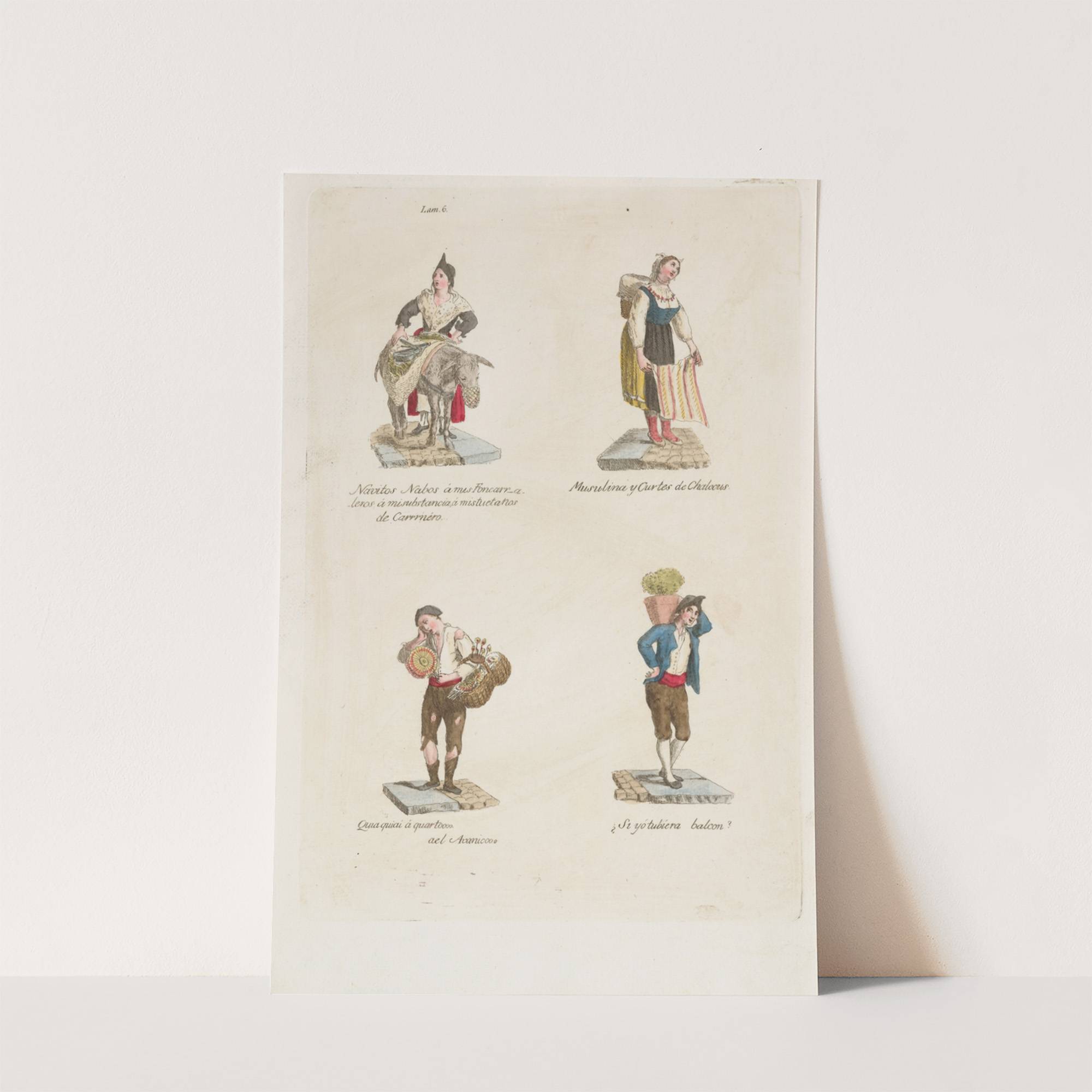 Plate 6; four street vendors from Madrid selling navitos, muslin, fans, plants (1809–1817) by Miguel Gamborino - Wall Art Print