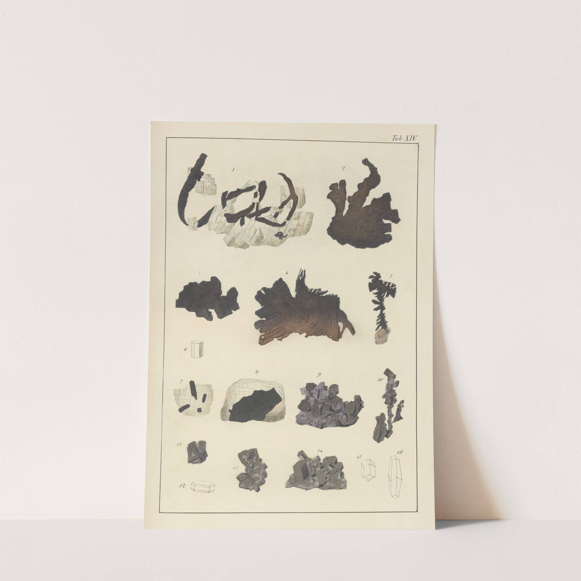 Plate XIV: Native Silver, Antimonial Silver, Sulphuret of Silver, Glance and Red Silver Ore by Johann Gottlob Kurr - Wall Art Print
