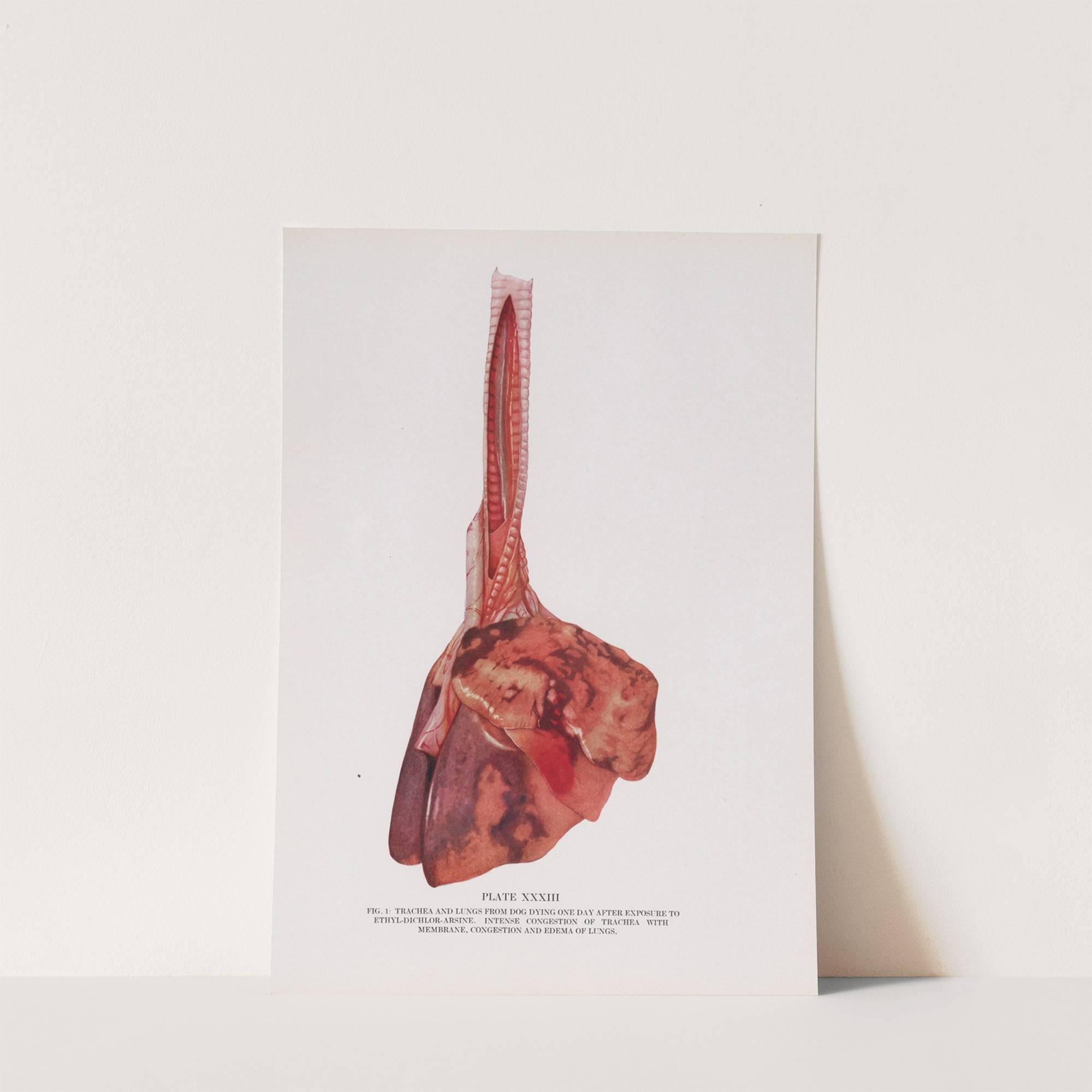 Plate XXXIII (Fig. 1): Trachea and lungs from dog dying 1 day after exposure to ethyldichlorarsine. by Milton C. Winternitz - Wall Art Print