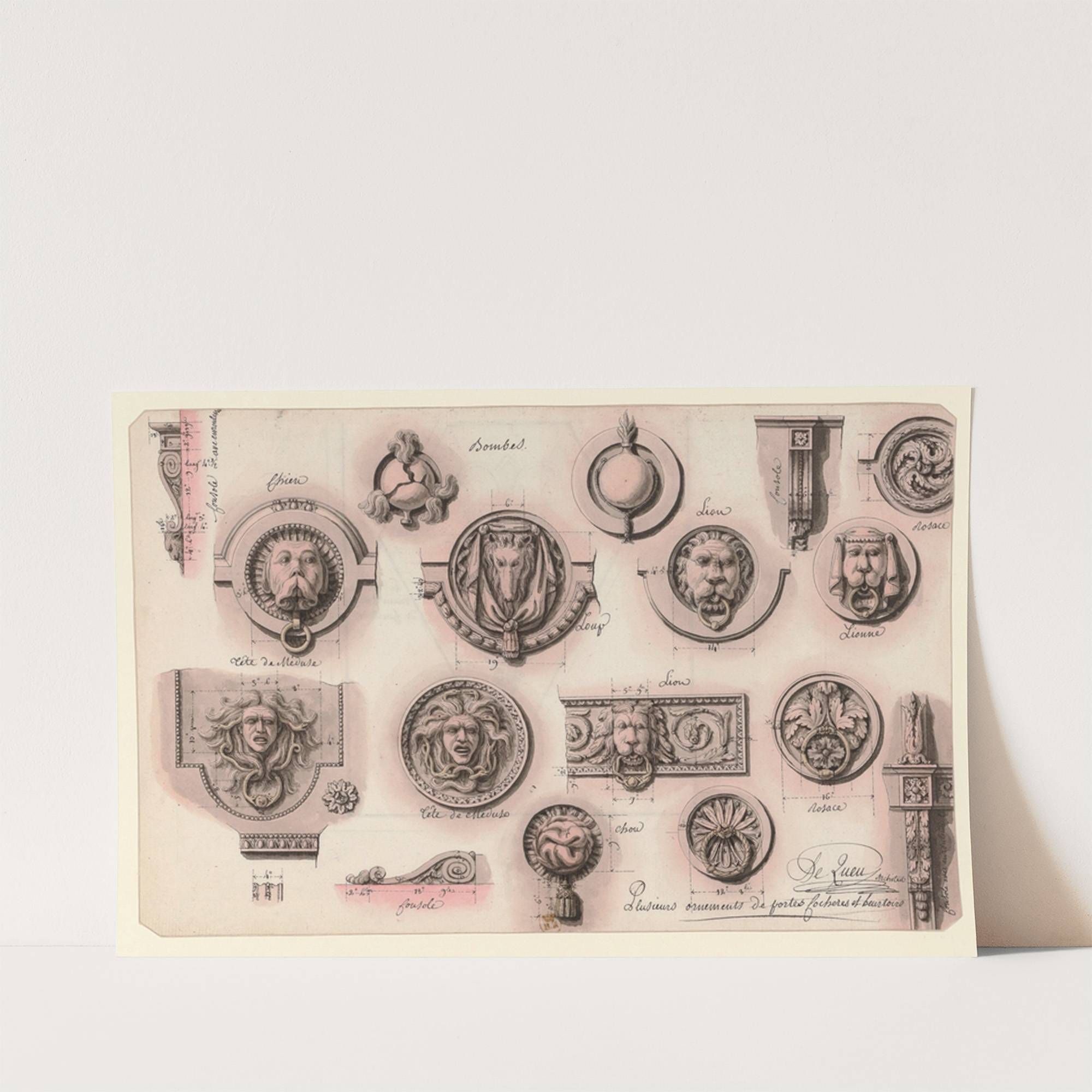 Plusieurs ornements de portes cochères et heurtoirs (1777-1825) by Jean Jacques Lequeu - Wall Art Print