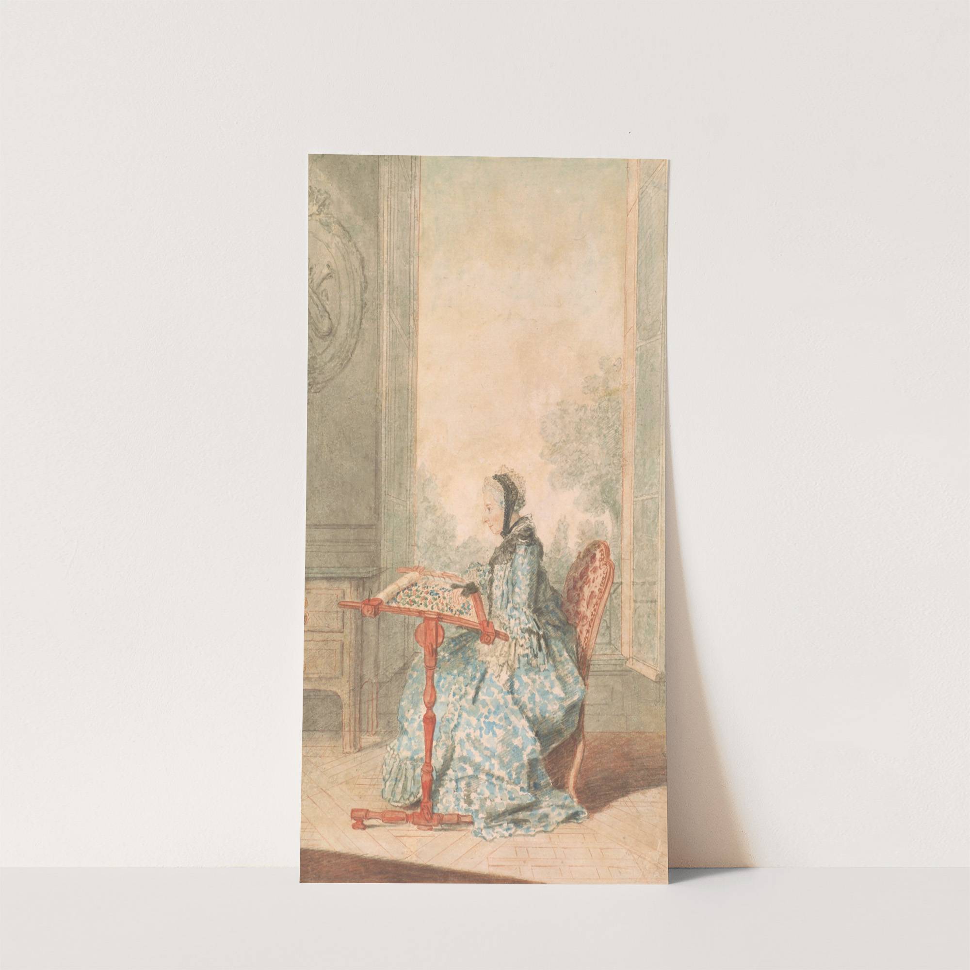 Portrait of a Woman at an Embroidery Frame by Louis Carrogis Carmontelle - Wall Art Print