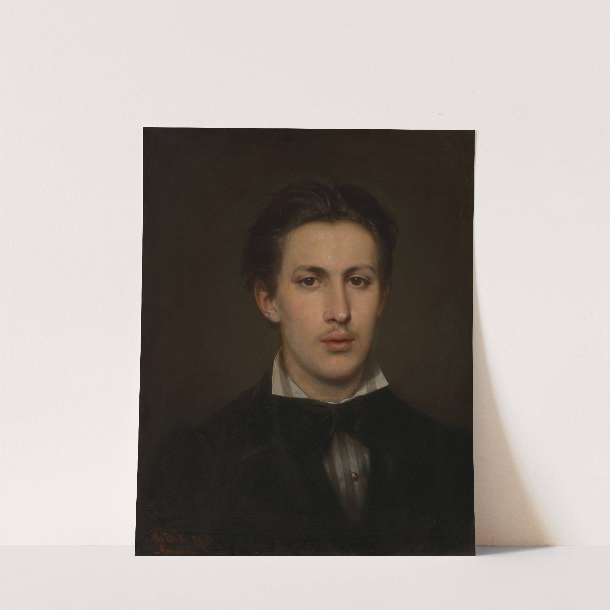 This artwork is a meticulously detailed portrait of Jan Zawiejski painted by Aleksander Kotsis in an oil-on-canvas style. The subject's calm, composed expression is perfectly captured against a dark, almost black backThe subject wears a formal, black jacket over a...