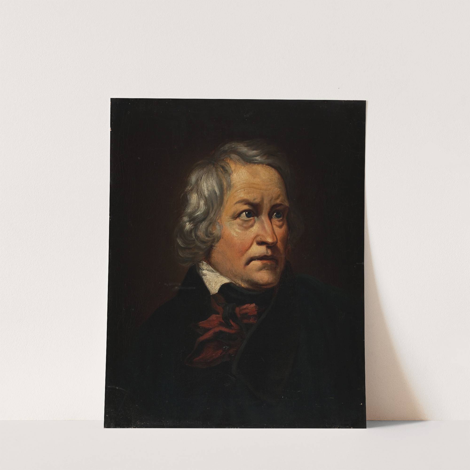 This classical oil painting on canvas features "Portrait of Thorvaldsen" by Apollinary D. Shchedrin, renowned for its meticulous detail and expressive realism. The subject is an older man with a gentle yet contemplative facial expression, highlighted against a deep black...