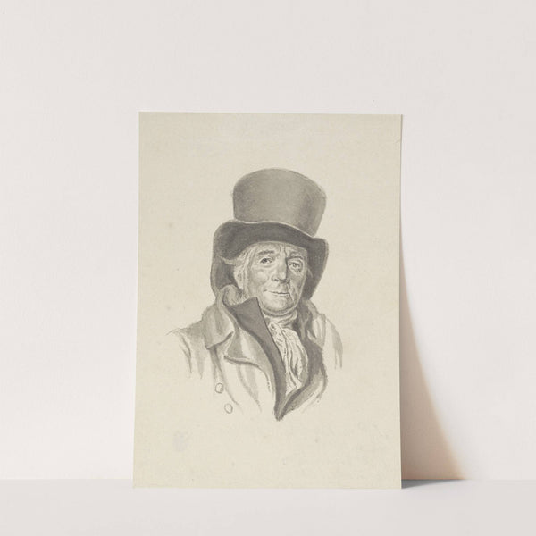 This elegant black-and-white portrait captures the refined likeness of an older gentleman in 19th-century attire. The artist, Joannes Pieter Visser Bender, has skillfully rendered this piece using pencil on paper, showcasing exceptional detail and texture. The subject's expressive face is...