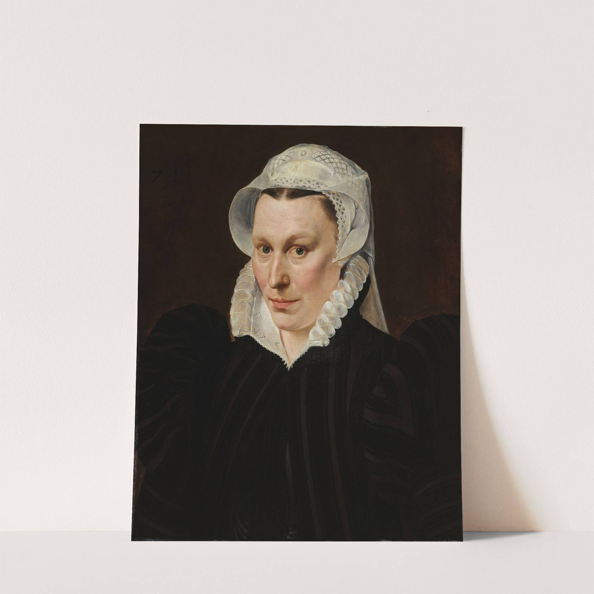 This elegant portrait captures the timeless essence of "Portret van Magdalena Plantin" by Adriaen Thonis. The subject, an enigmatic woman with pale skin and delicate features, exudes a serene yet dignified presence. Her expression is calm and composed as she...