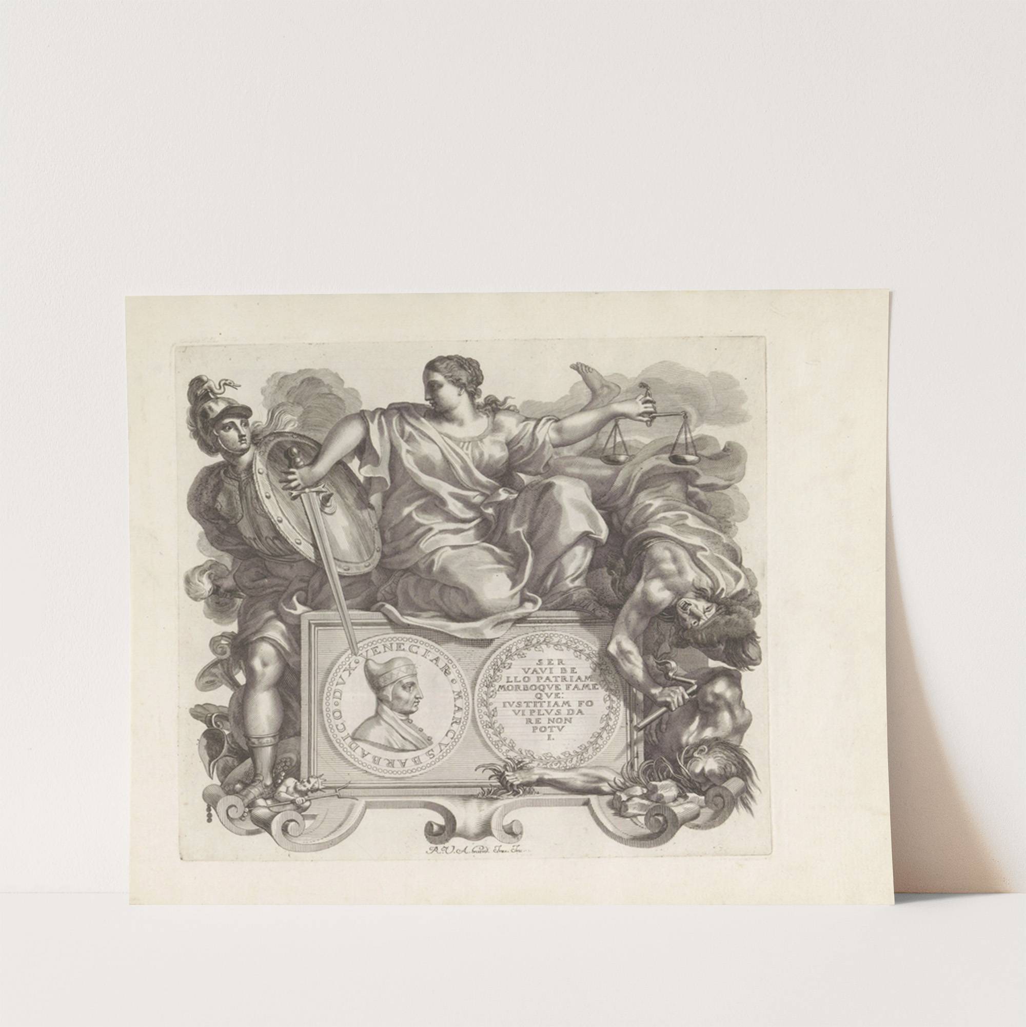 Portret van Marco Barbarigo en de personificaties van Waakzaamheid en Gerechtigheid (1673-1743) by Robert van Audenaerde - Wall Art Print