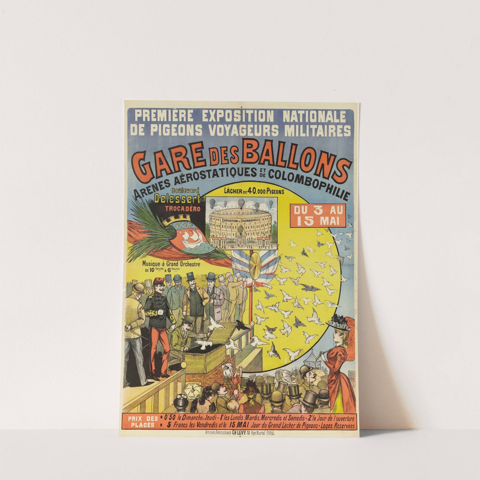 Premiere Exposition Nationale De Pigeons Voyageurs Militaires Gare Des Ballons (1890) by Imp. Charles Lévy - Wall Art Print