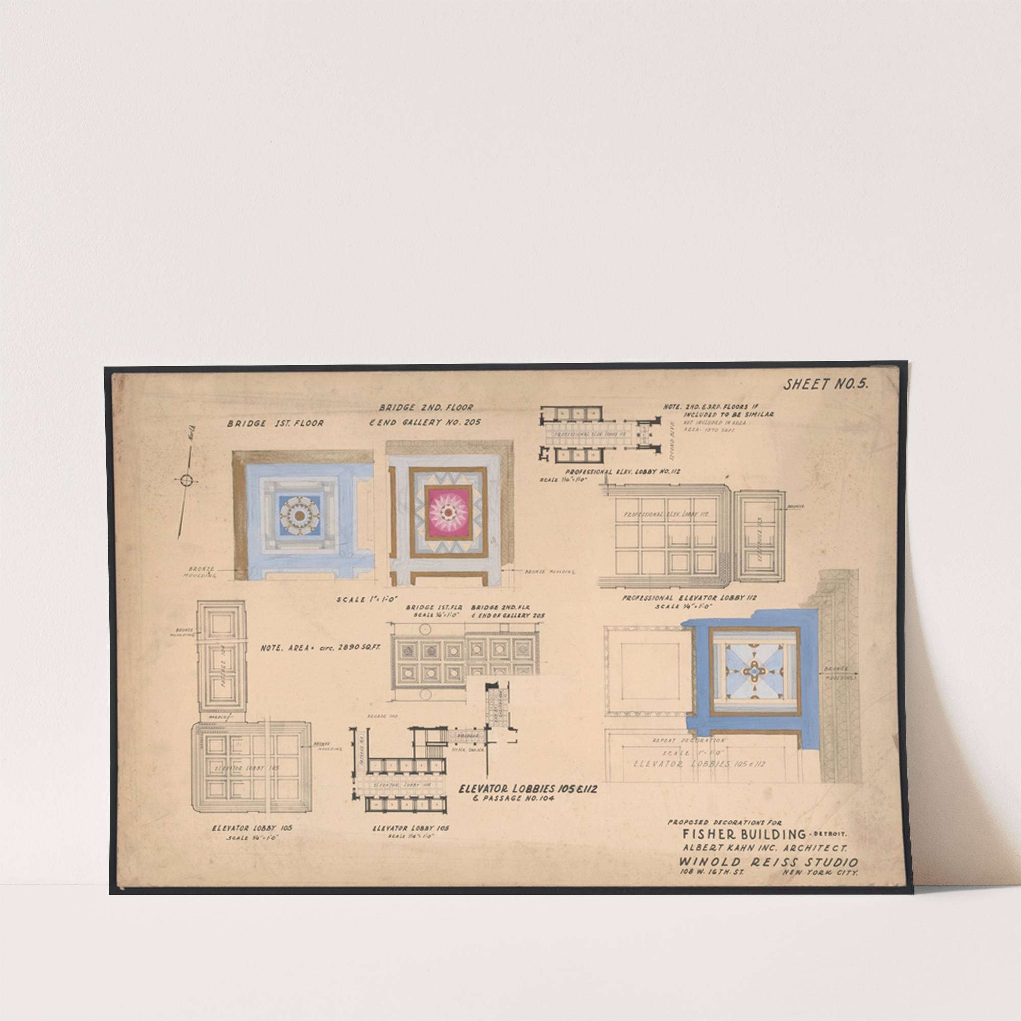 Proposed decorations for Fisher Building, Detroit.] [Bridge 1st floor.] [Bridge 2nd floor & end gallery no. 205.] [Elevator lobbies 105 & 112 by Winold Reiss - Wall Art Print