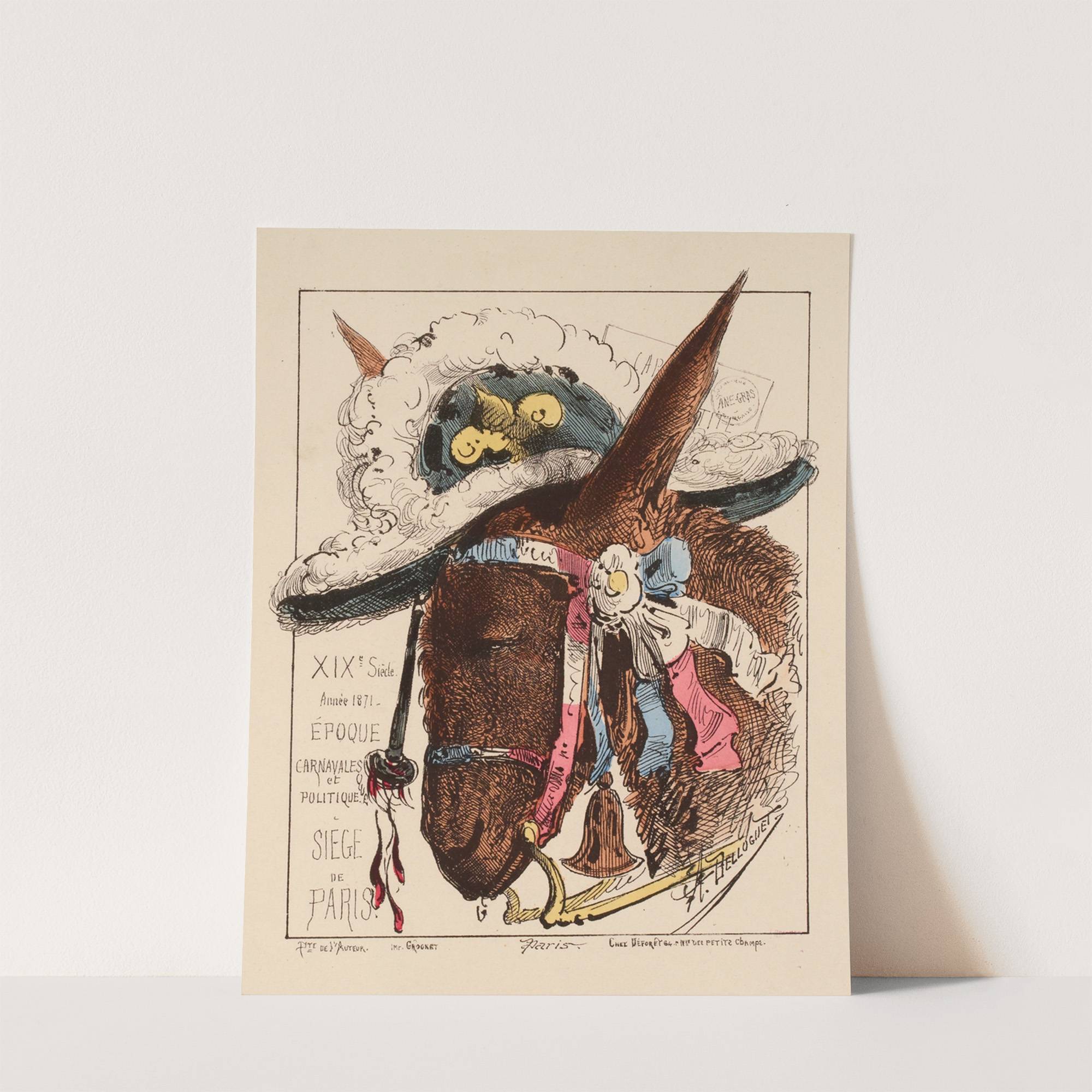 This vibrant, whimsical print features "Qui" by the artist Achille Beloguet. It showcases an imaginative blend of traditional skiing attire and a bird-like creature with striking details. The central figure is a large bird, resembling an eagle or falcon, adorned...