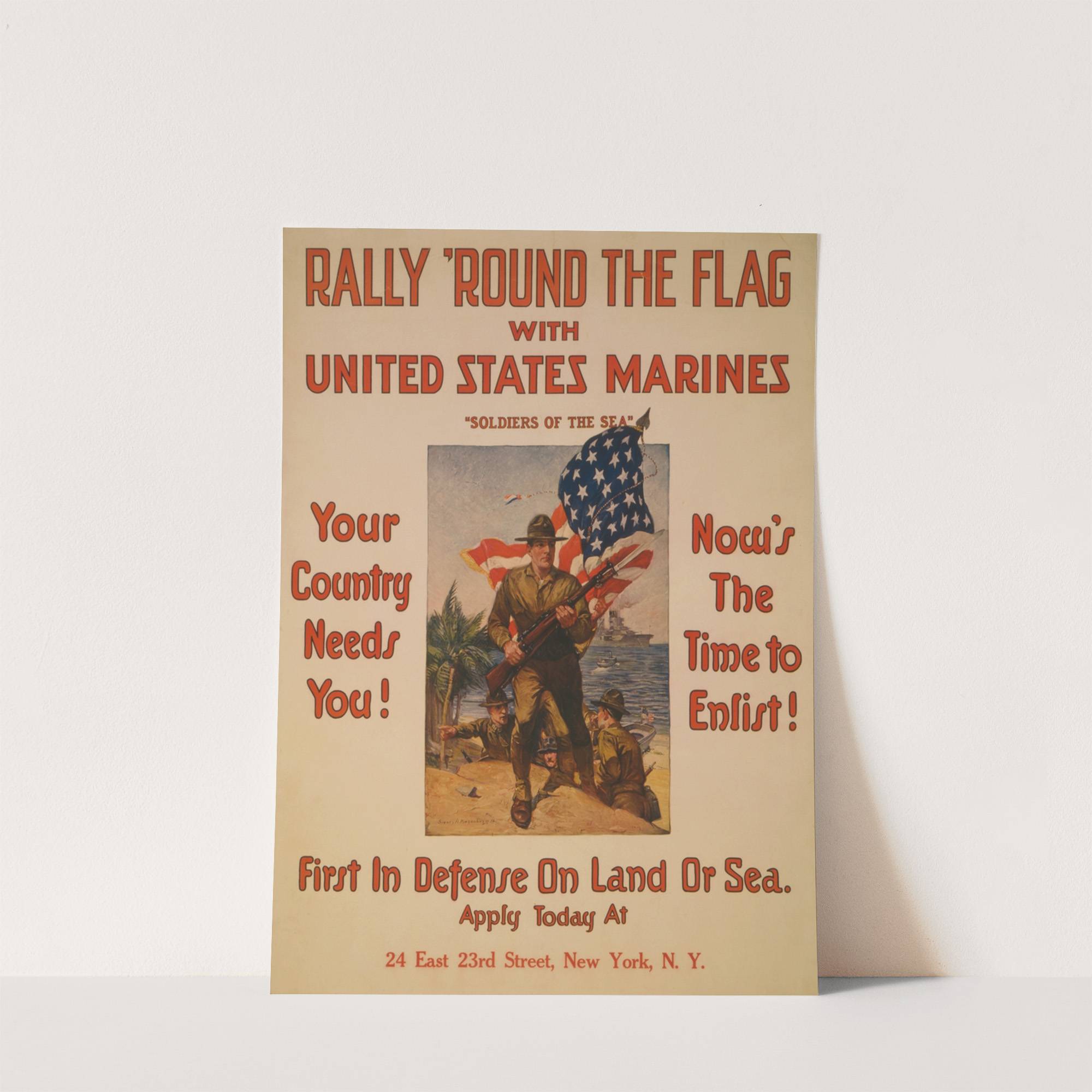 Rally ’round the flag with United States Marines ‘Soldiers of the sea’ First in defense on land or sea by Sidney Riesenberg - Wall Art Print