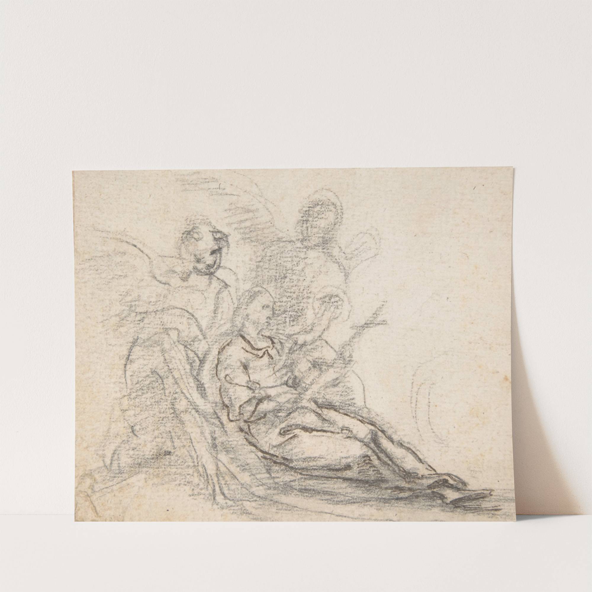 Reclining Figure of Saint Holding Cross, Supported by Two Angels by Pedro Duque y Cornejo - Wall Art Print