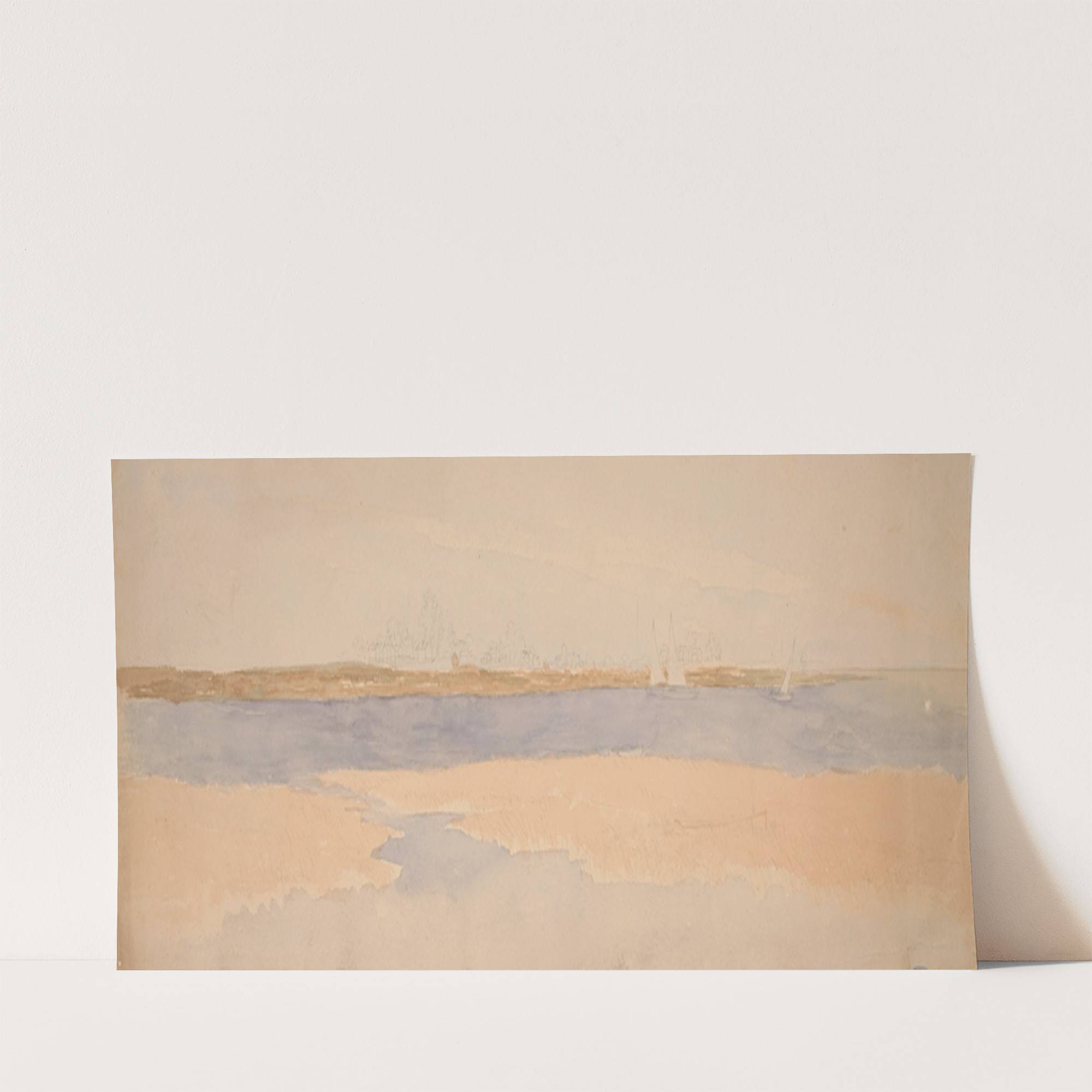 River Landscape with Town on Far Shore by Edwin Austin Abbey - Wall Art Print