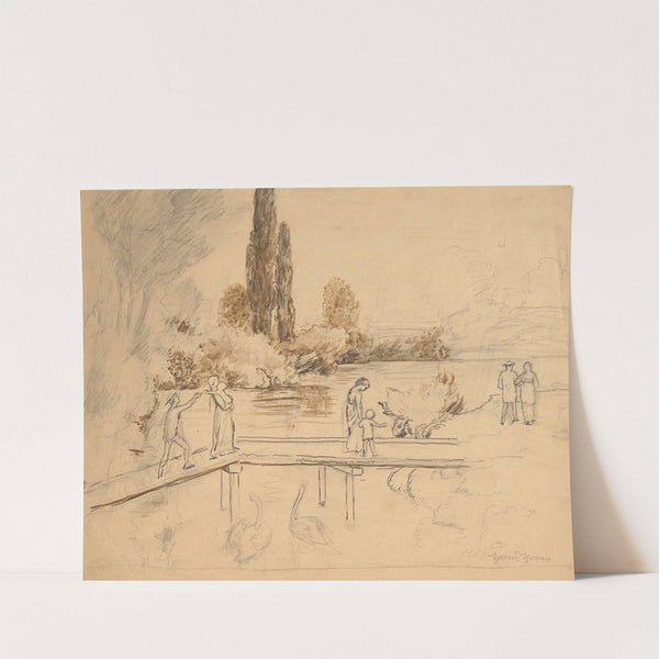 Riverside Landscape with a Bridge (1892) by Hans Thoma - Wall Art Print
