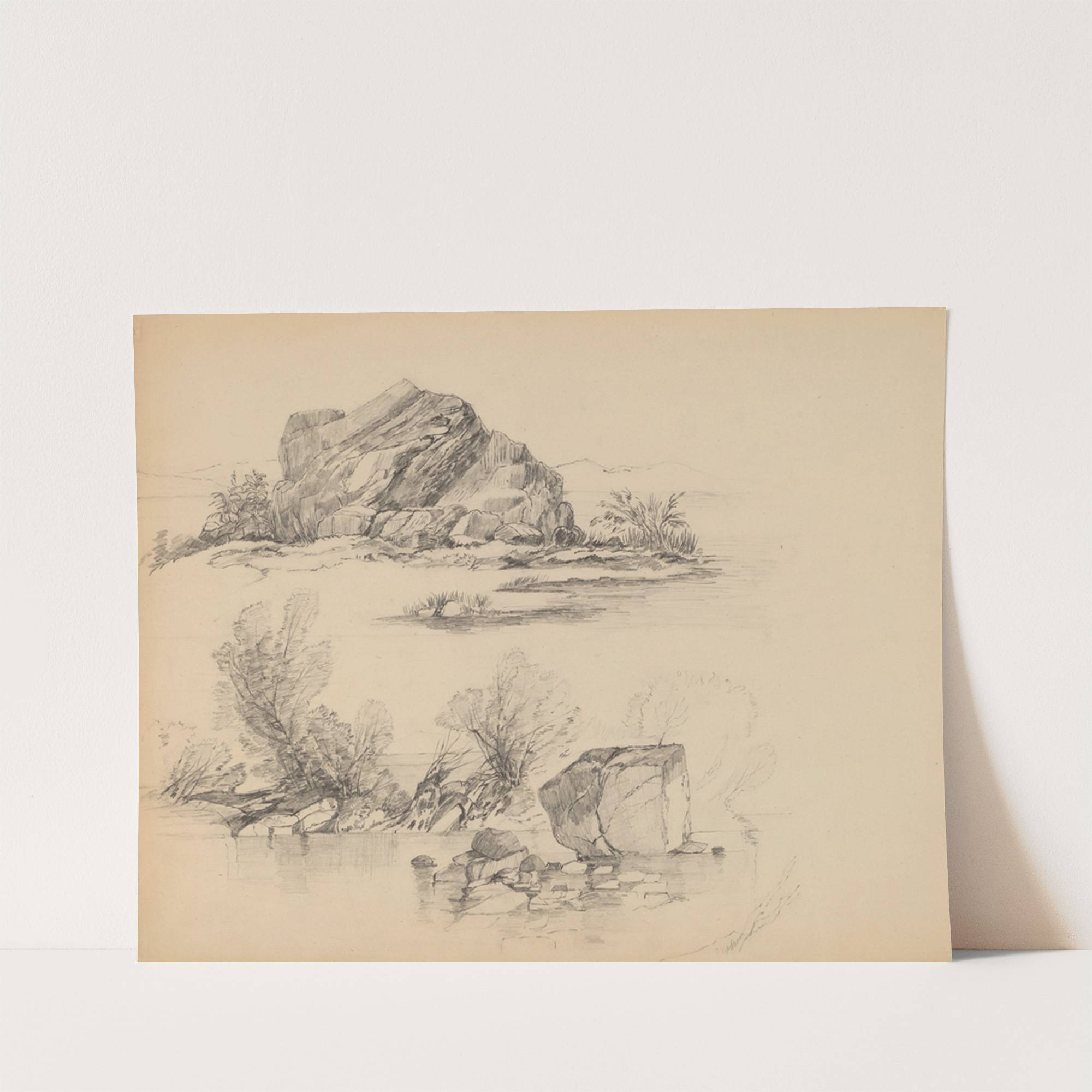 Rocks Along a Lakeshore (recto) by John William Casilear - Wall Art Print