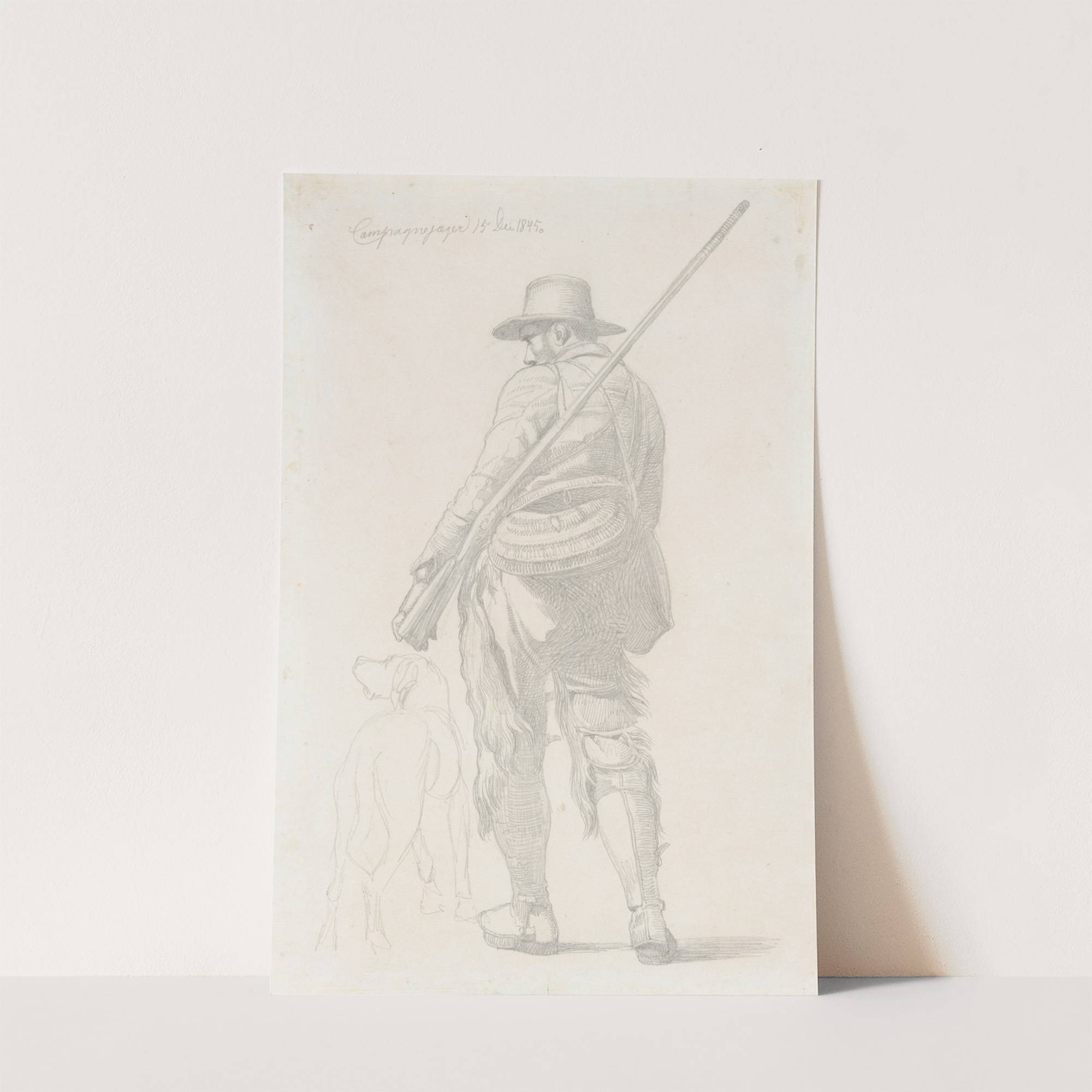 Roman Hunter with his Dog, seen from the Back by Johan Thomas Lundbye - Wall Art Print
