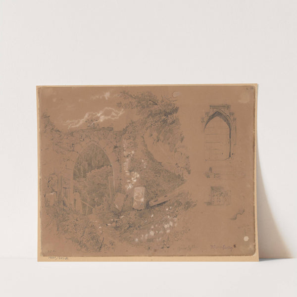 Ruins of the Entrance Gate in Ojców, and Doors with Fittings and Details from the Collegiate Church in Wiślica (1852) by Wojciech Gerson - Wall Art Print