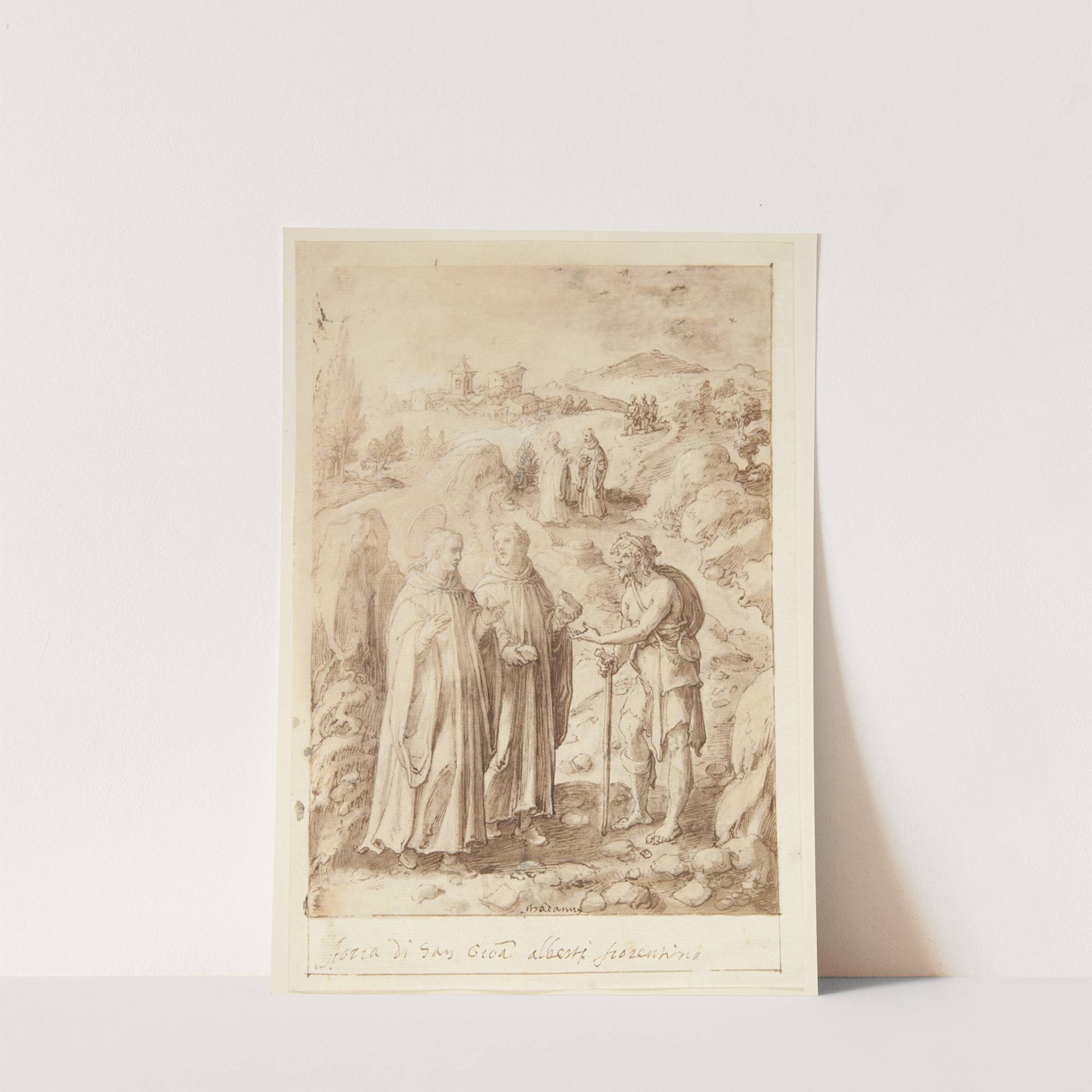 S Giovanni Alberti Fiorentinos historie Helgenen og den ledsagende munk giver en tigger deres sidste brød by Jan van der Straet - Wall Art Print