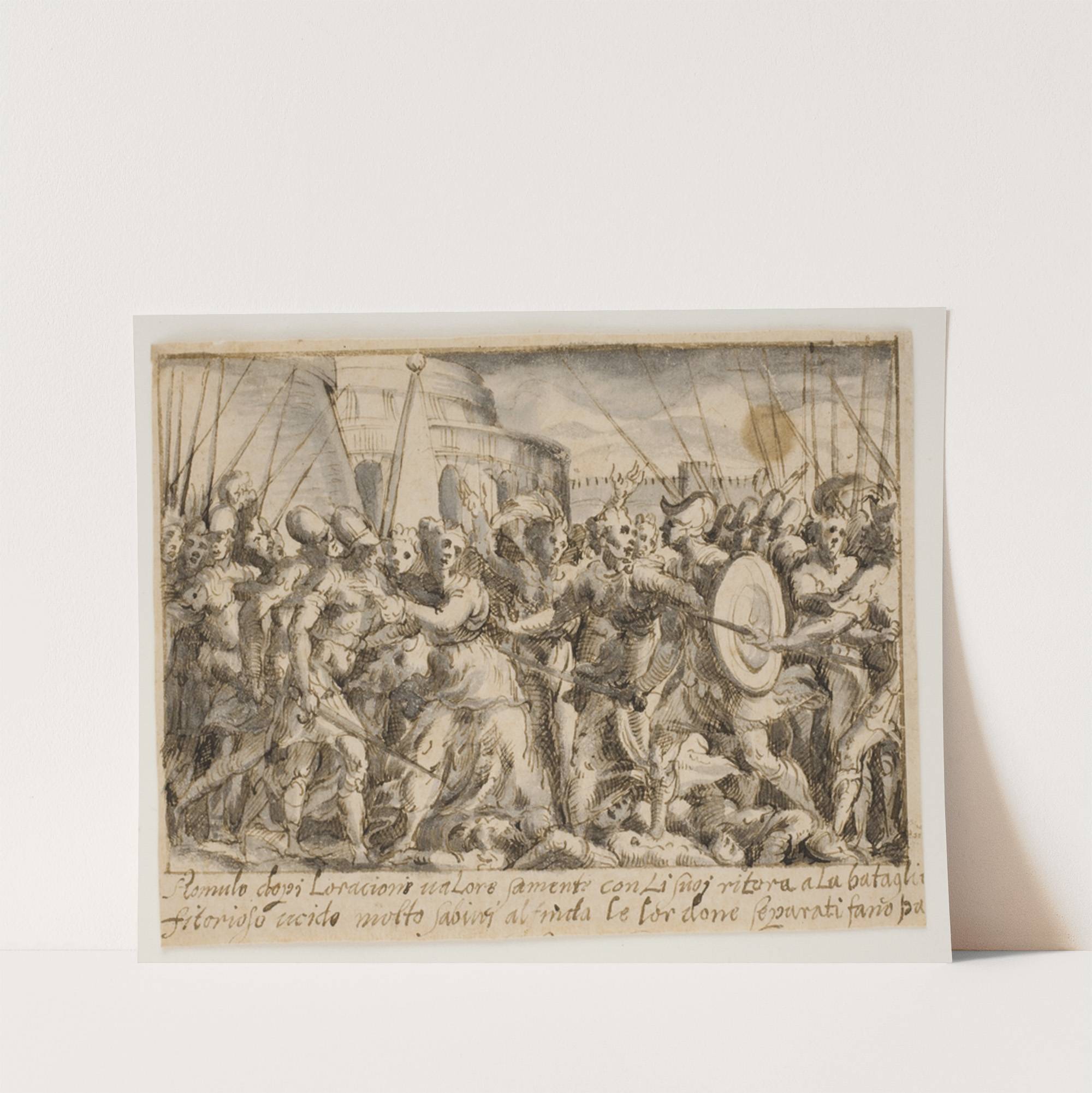 Sabinerkvinderne forhandler fred mellem romerne og sabinerne by Giovanni Battista Fontana - Wall Art Print