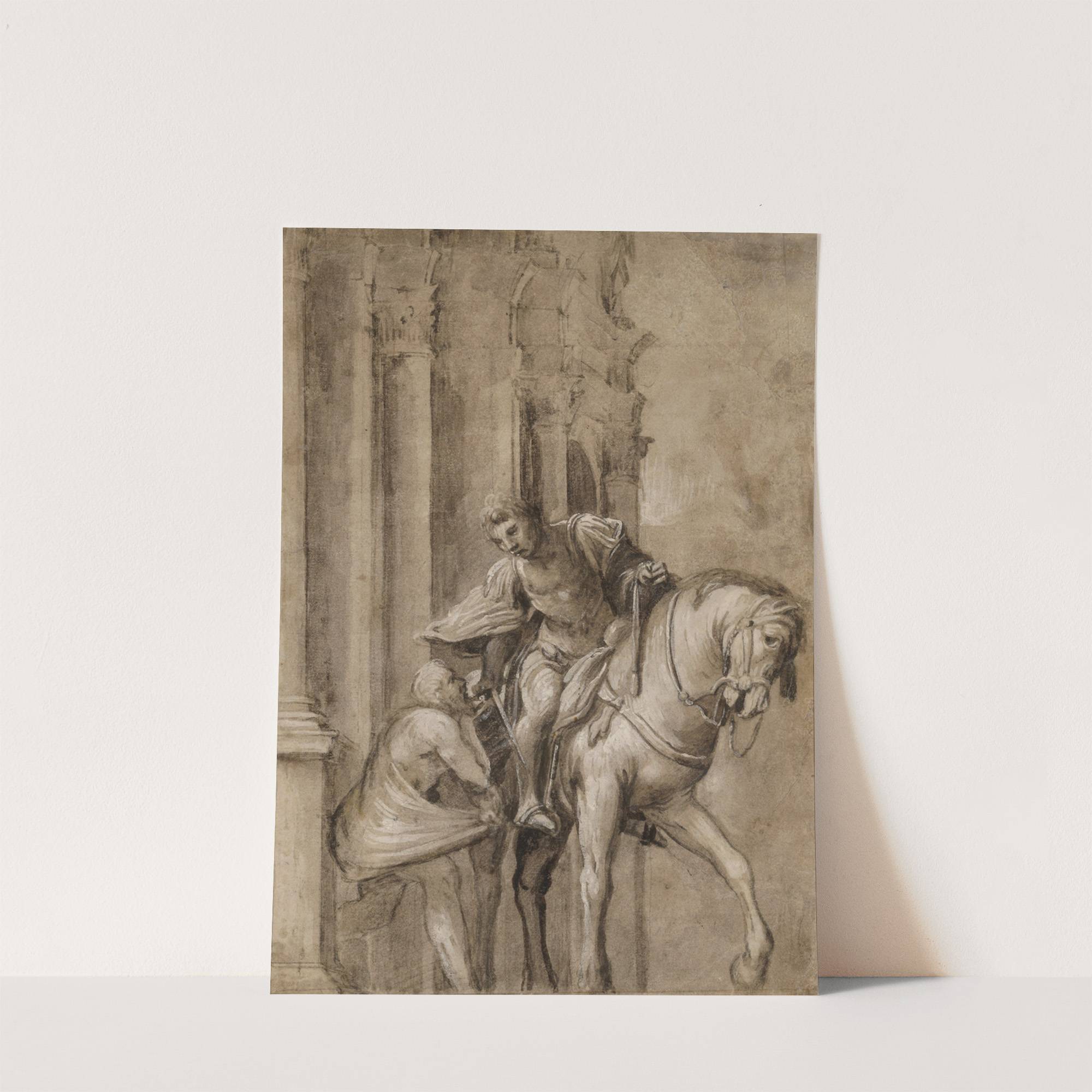Saint Martin Dividing His Cloak with a Beggar (1530) by Lorenzo Lotto - Wall Art Print