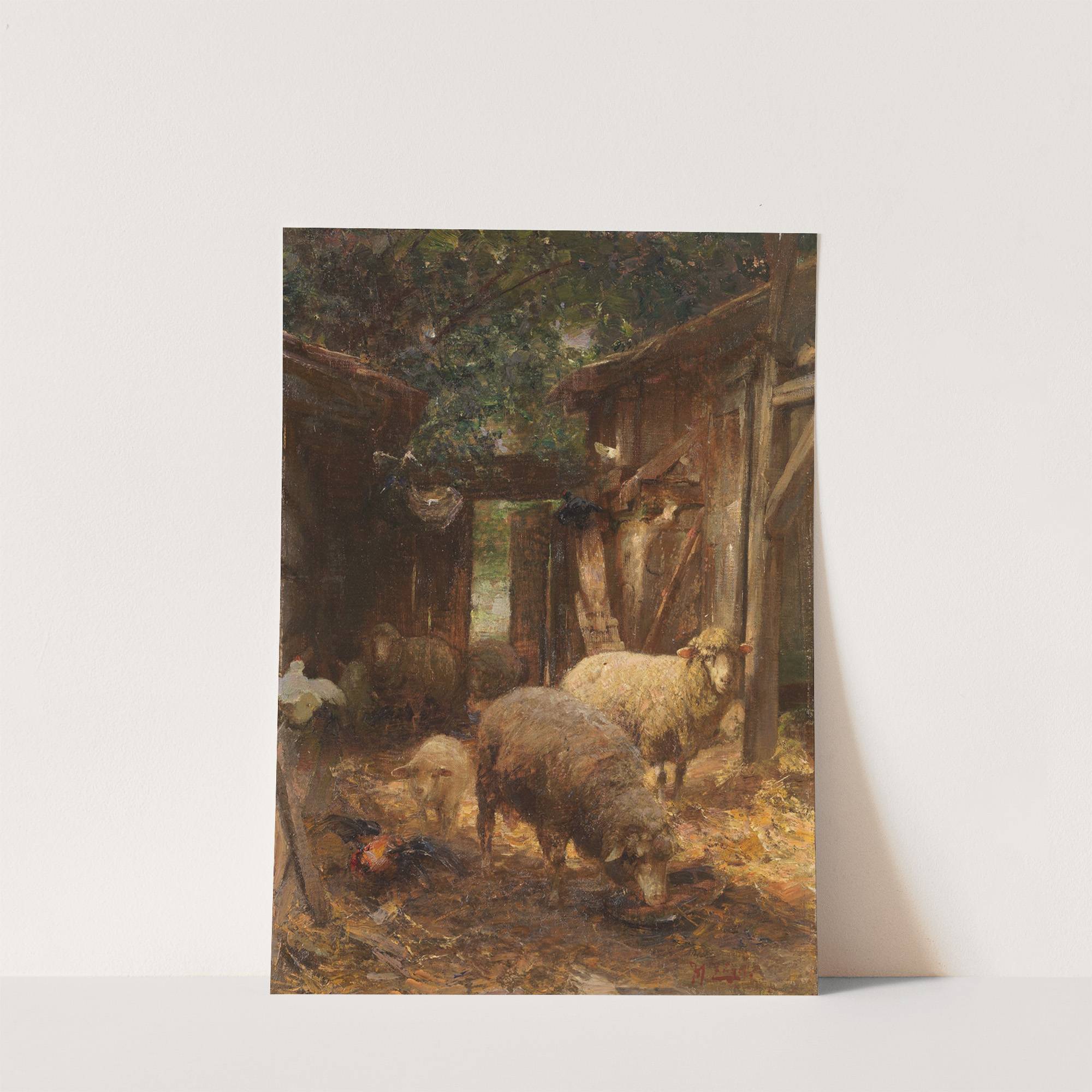 Schafe und Lämmer beim Hühnerstall by Heinrich Von Zügel - Wall Art Print