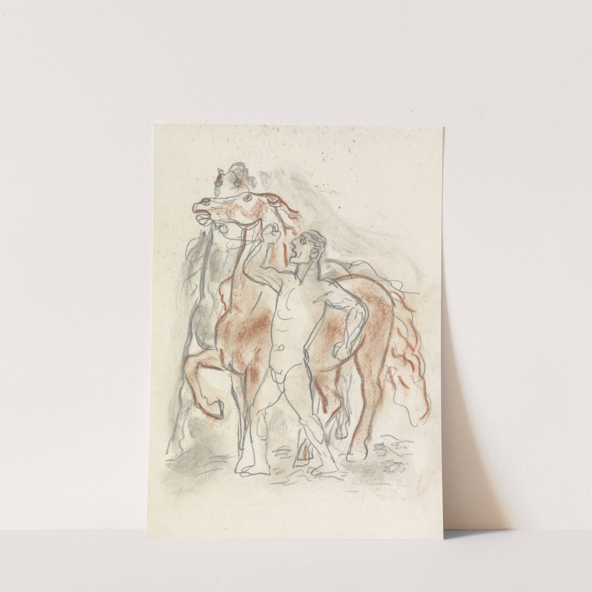 Schetsblad met naakte man, die twee paarden in bedwang houdt by Leo Gestel  - Wall Art Print