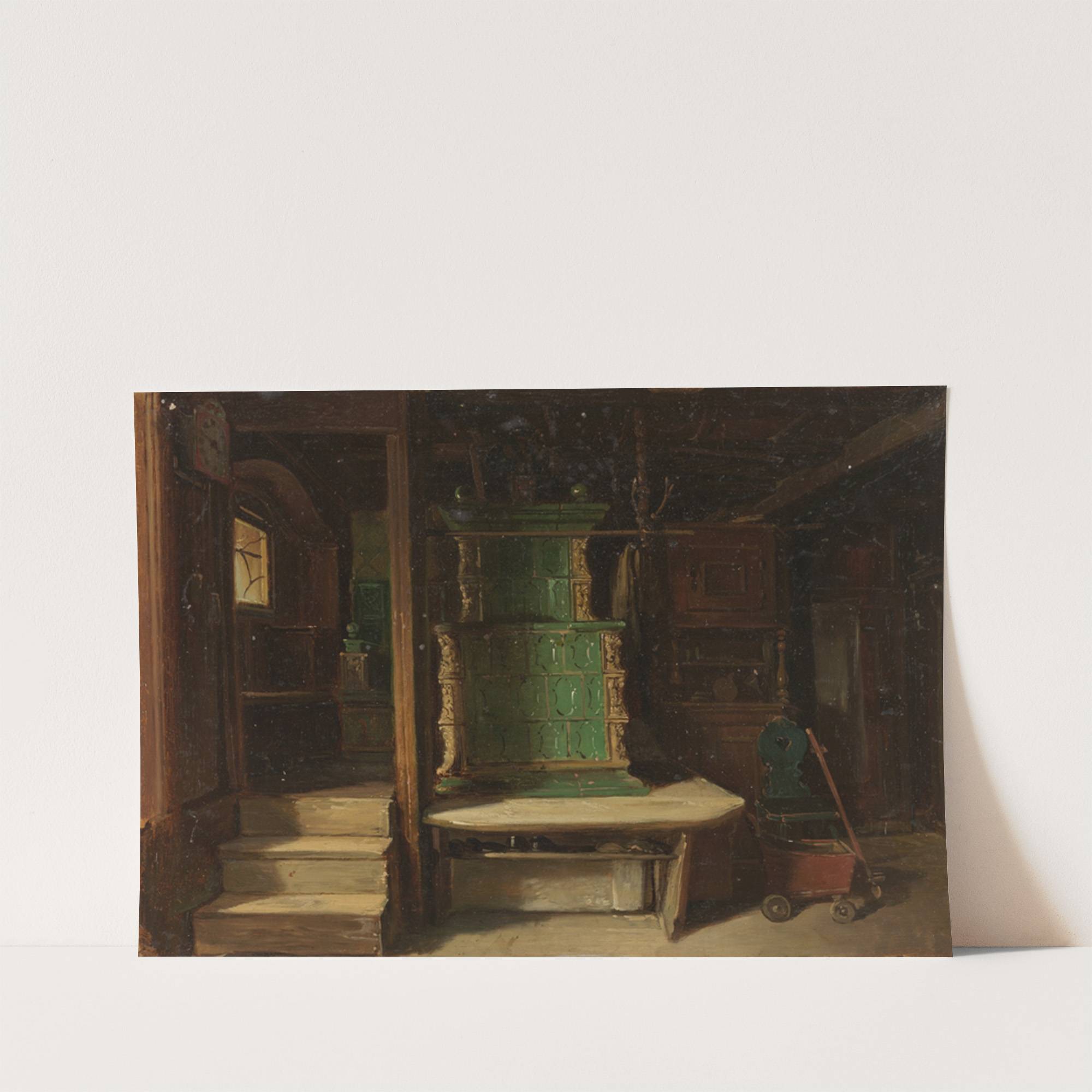 Schwarzwälder Bauernstube mit grünem Kachelofen by Johann Baptist Kirner - Wall Art Print