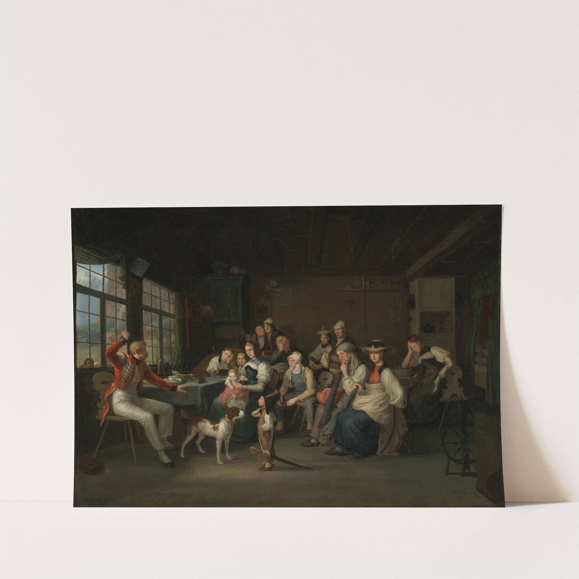 Schweizer Gardist erzählt in seiner Heimat seine Erlebnisse während der Pariser Juli-Revolution von 1830 by Johann Baptist Kirner - Wall Art Print
