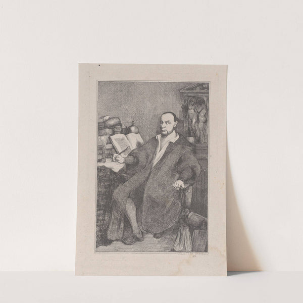Seated Man with Quill in his Right Hand at Desk Littered with Books (1834) by Celestin Nanteuil - Wall Art Print
