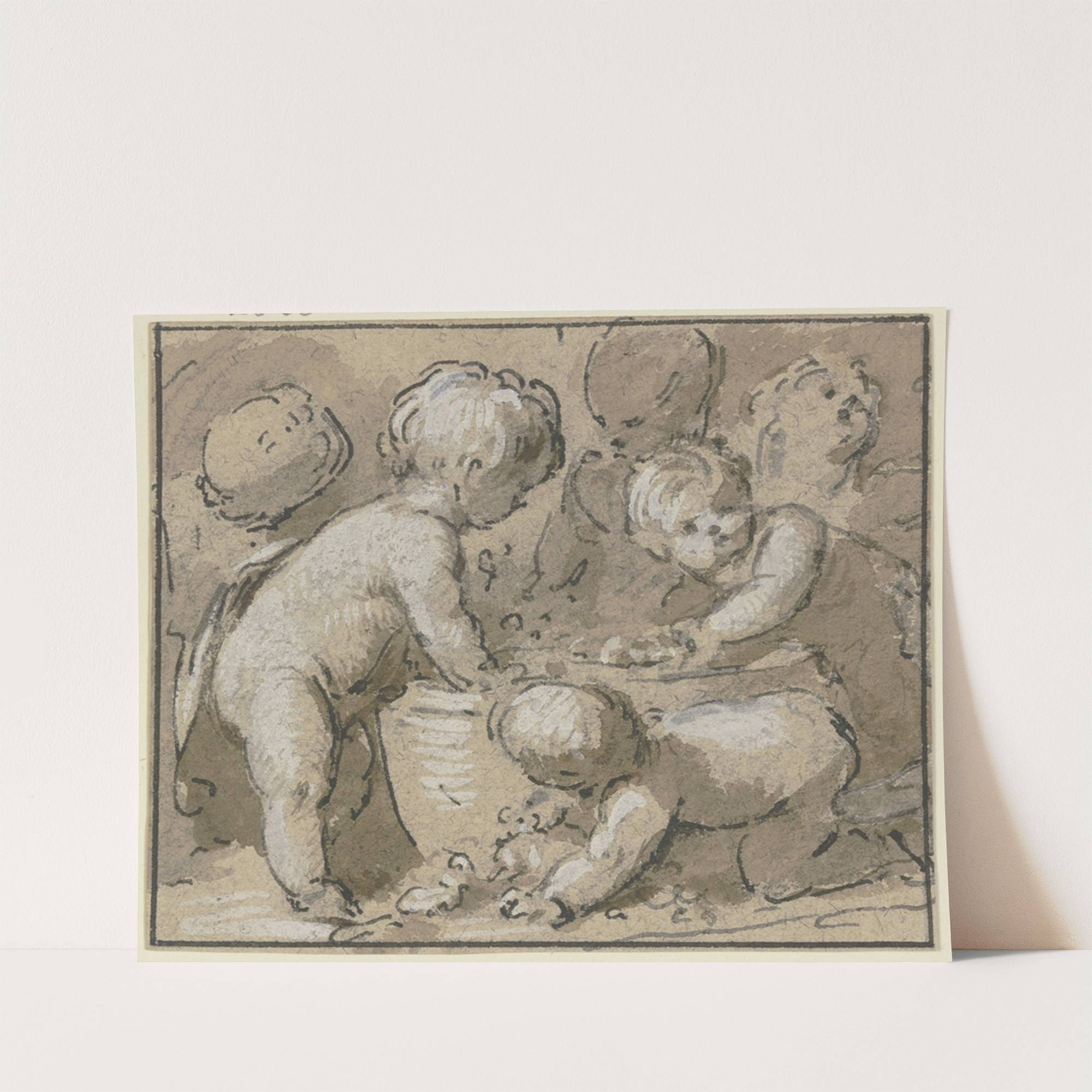Sechs Amouretten, die Wein keltern by Jacob de Wit - Wall Art Print