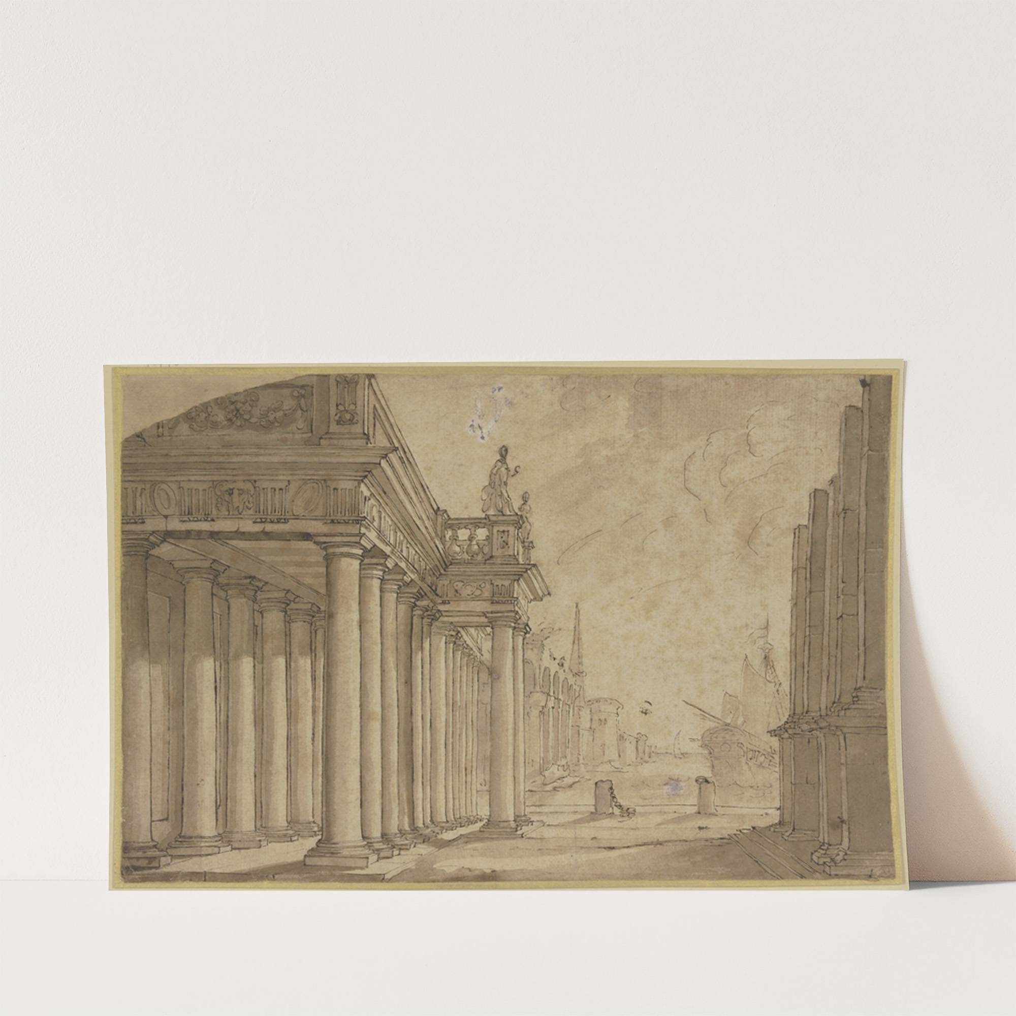 Seehafen, links eine Säulenhalle by Ottavio Viviani - Wall Art Print