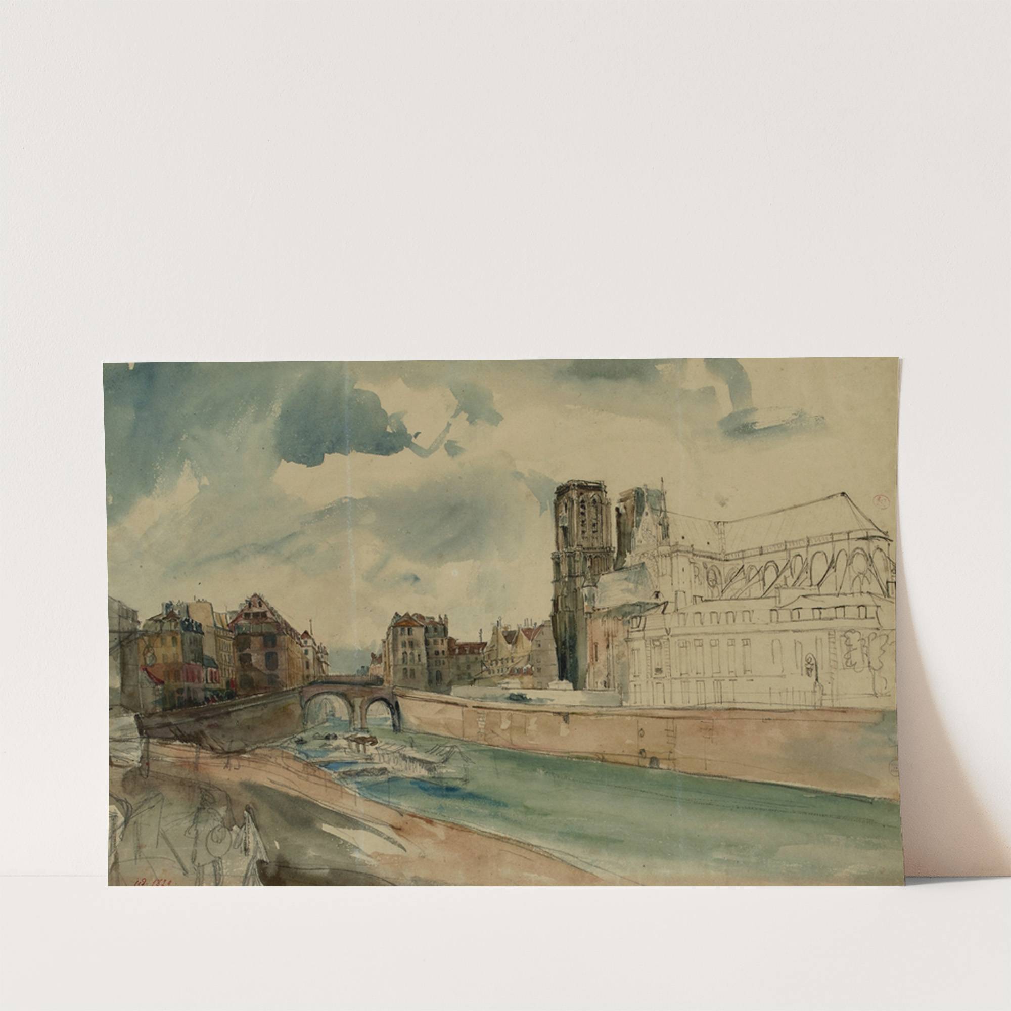 Seine devant l’archevêché et la cathédrale Notre-Dame vers 1840 (1915-1945) by Henri Jean Baptiste Levis - Wall Art Print